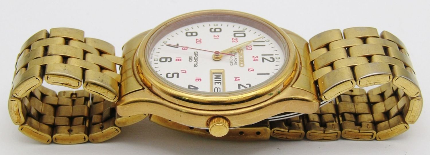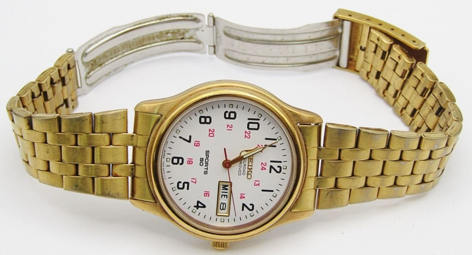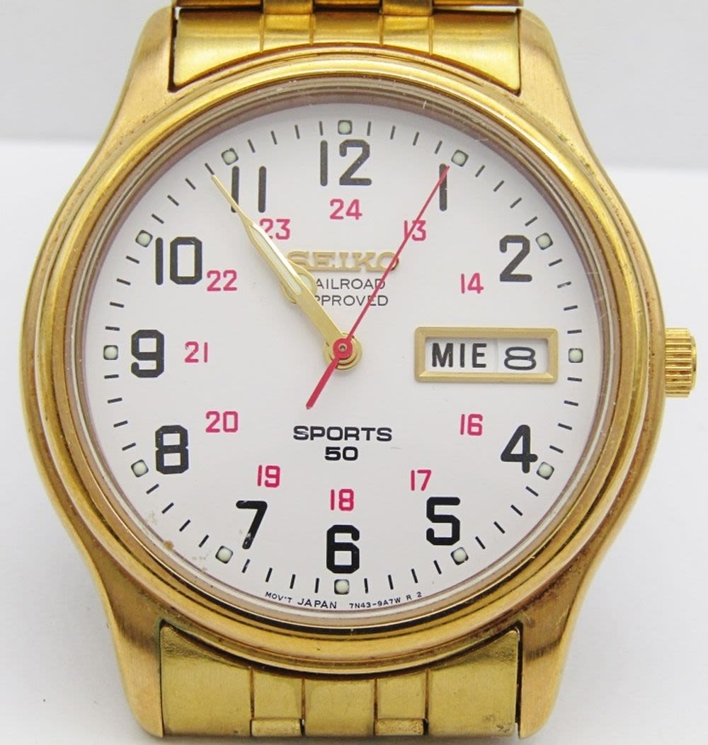 Original White Dial with Red 24-Hour Markers Quartz Movement with Fresh Battery; Yellow Gold Plated Case and Bracelet