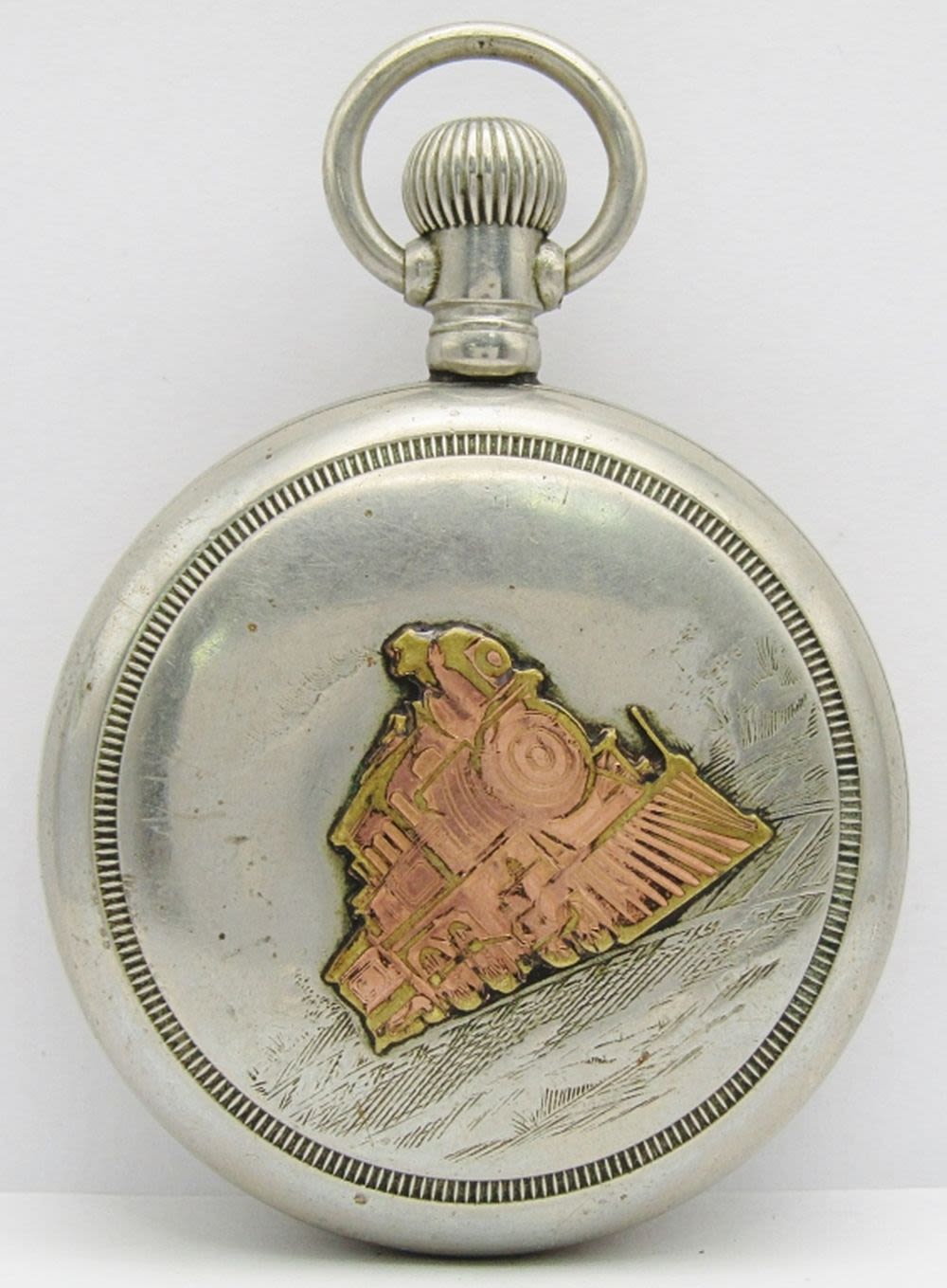 Double Sunk Porcelain Dial, Silveroid Screwback Case with Applied Gold Filled Locomotive