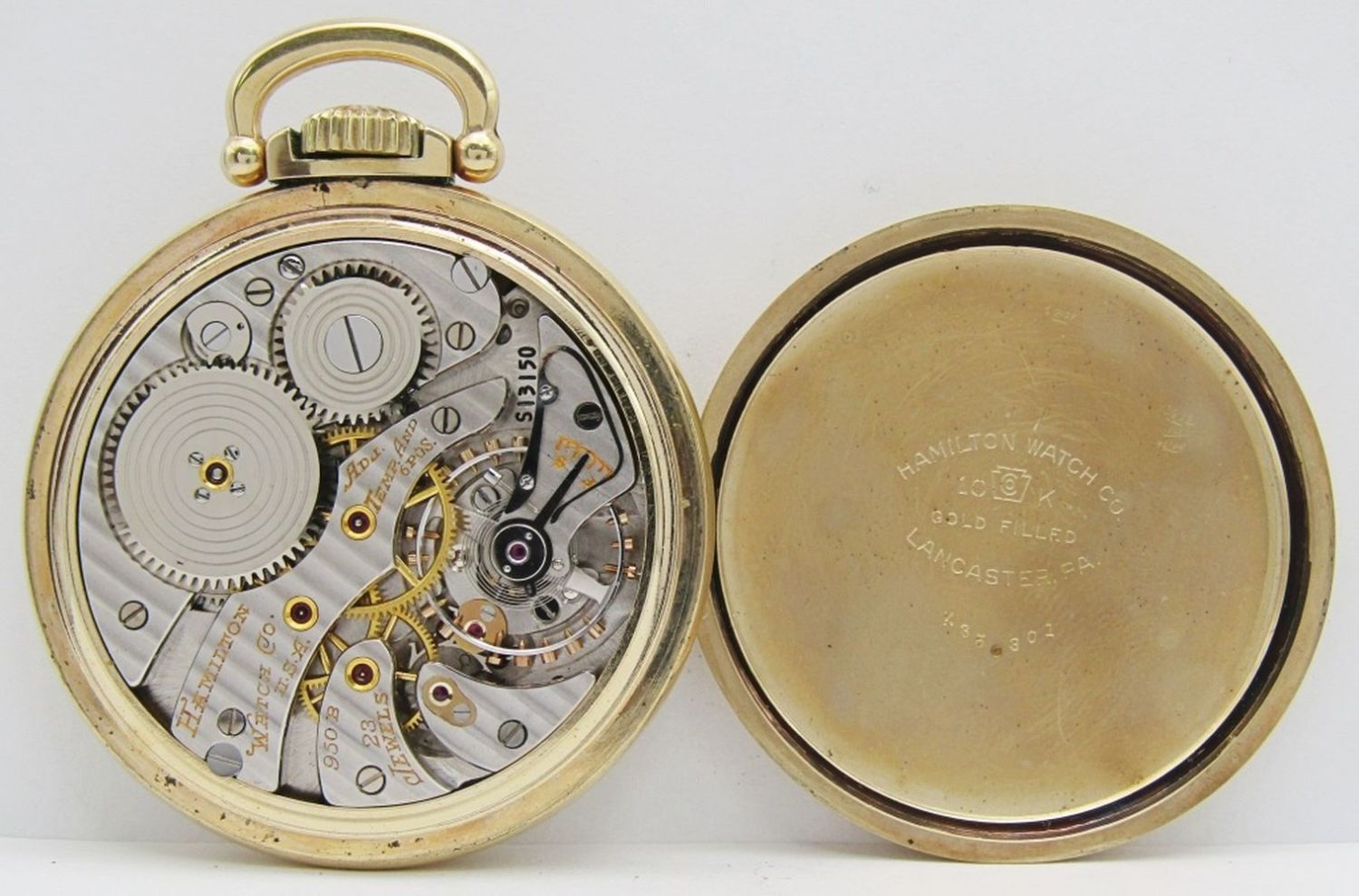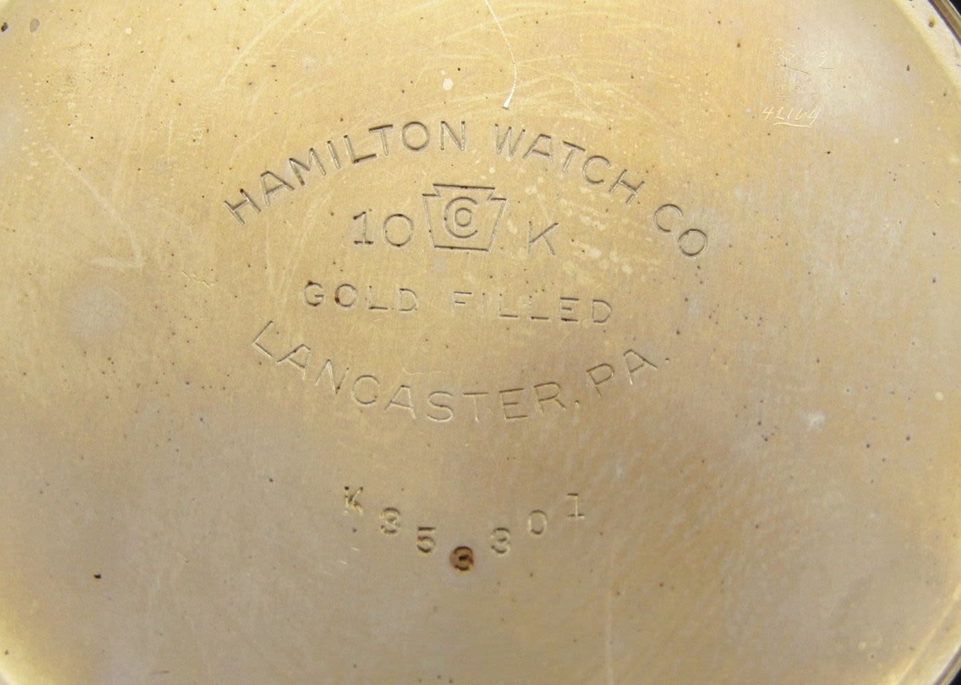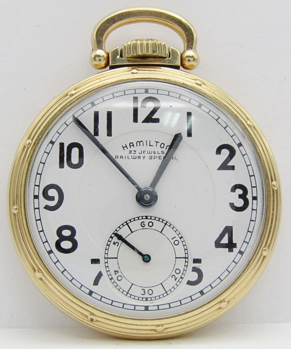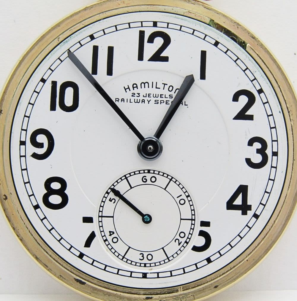 Melamine Railway Special Dial; Hamilton Marked (Model A); Yellow Gold Filled Screwback Case
