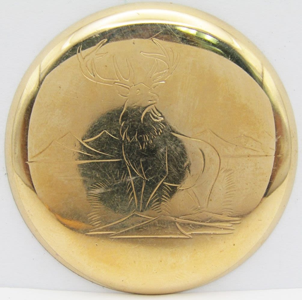 Original Gold Plated Dial; Yellow Gold Filled Screwback Case – Engraved with ELK