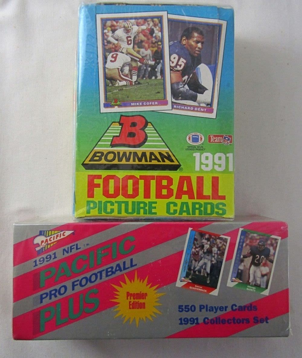 FACTORY SEALED, 1991 BOWMAN SEALED WAX BOX SET, 1991 PACIFIC PRO FOOTBALL PLUS PREMIER EDITION