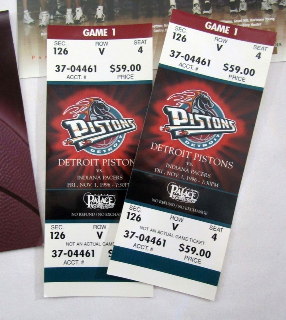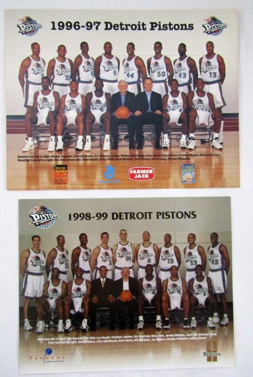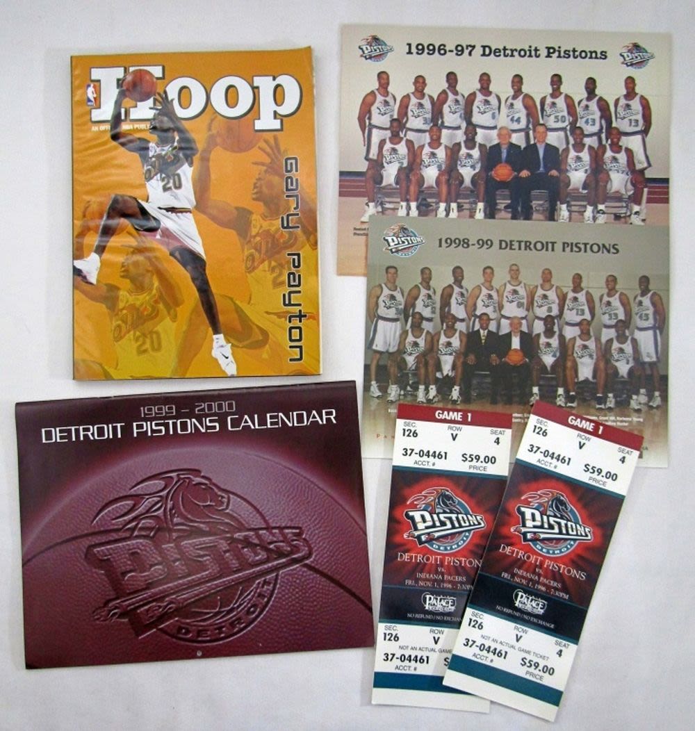 2- DETROIT PISTONS VS. INDIANA PACERS NOV 1 1996, HOOP GRAY PAYTON,96-97 & 98-99 TEAM PHOTOS, 99-00 PISTNS CALENDAR