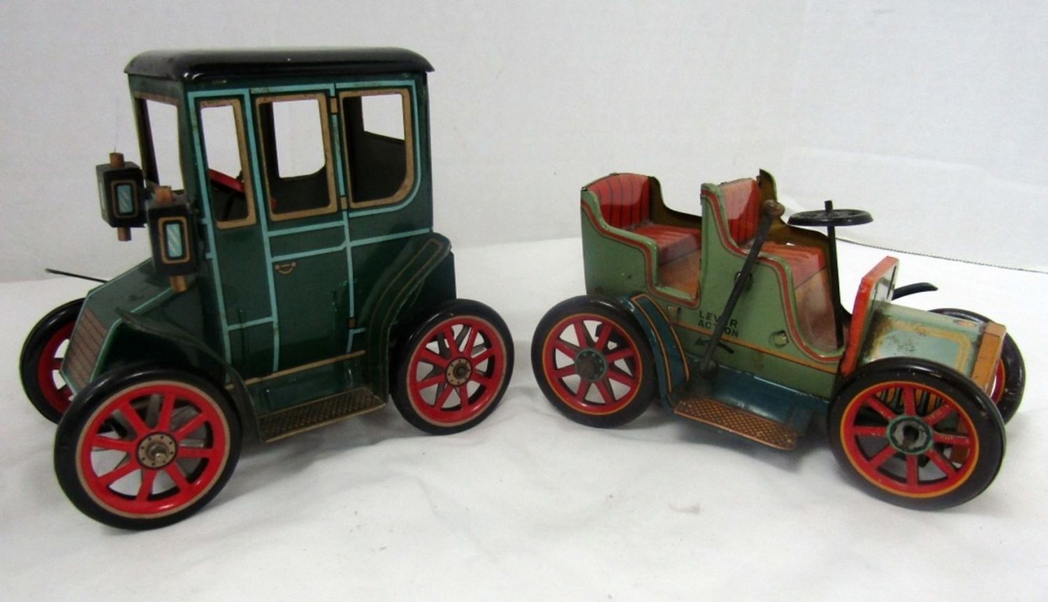 MADE IN JAPAN – DARK GREEN WORKING, LIGHT GREEN front wheel needs repair NOT WORKING – BOTH LEVER ACTION