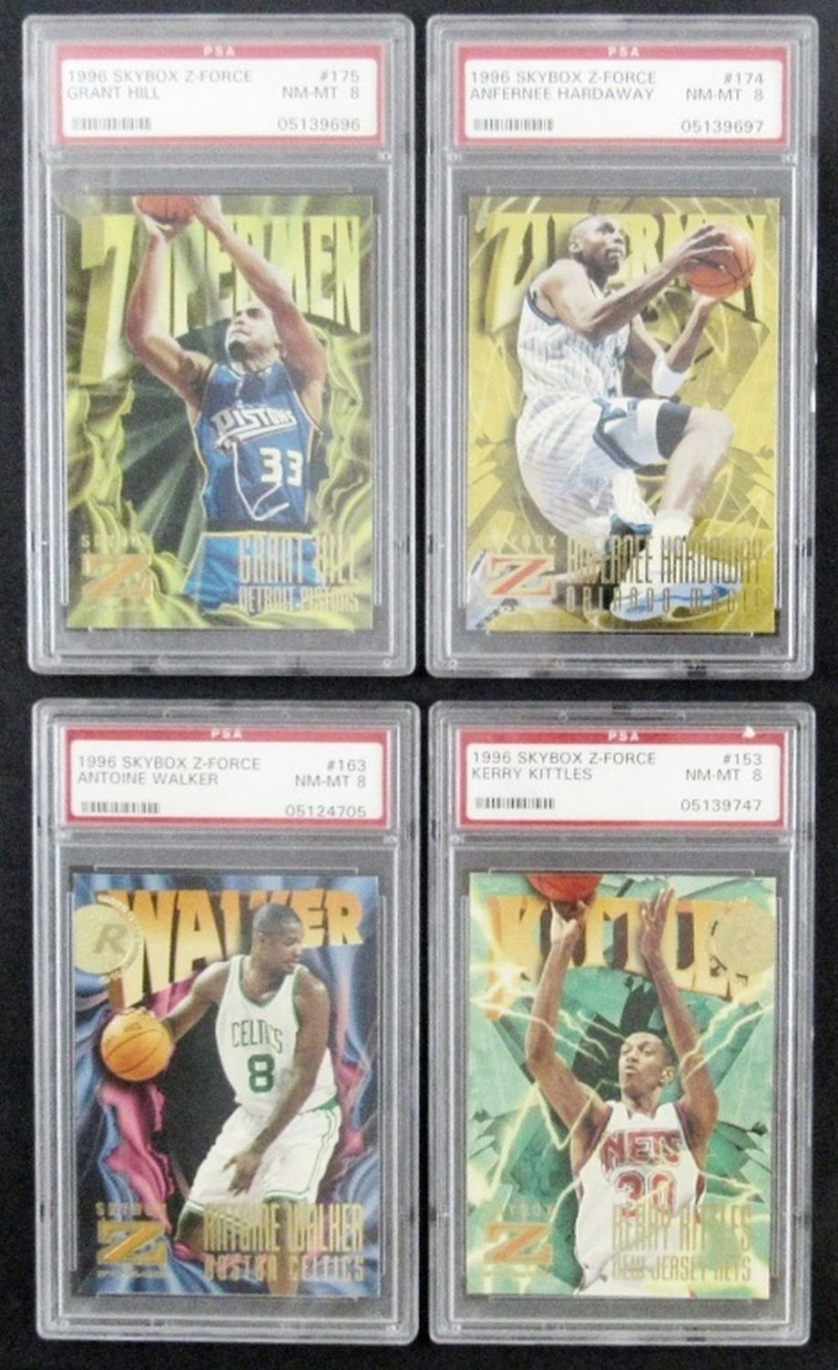 #153 KITTLES, #163 WALKER, #174 HARDAWAY, #75 HILL – ALL PSA NM-MT 8