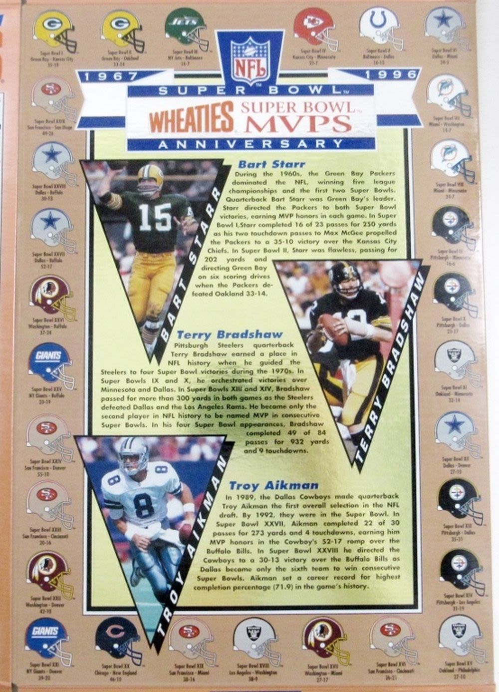 (3) WHEATIES NFL 75th ANNIV (1) WHEATIES 30th ANNIV SUPER BOWL & (1) VINTAGE KELLOGGS 1995