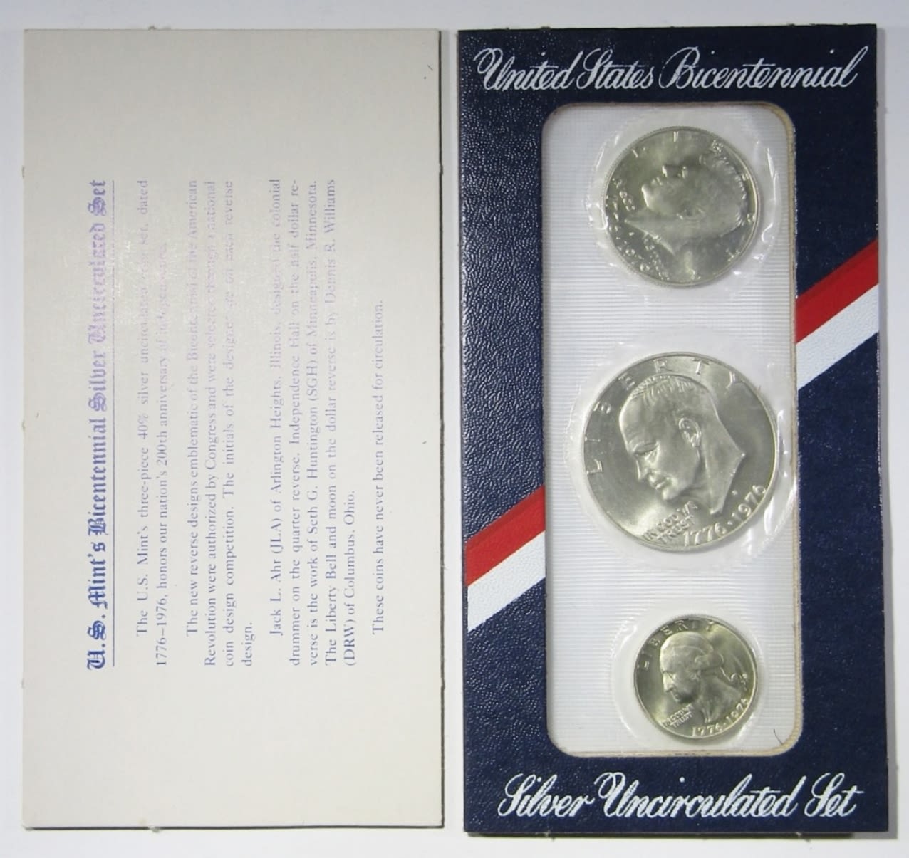 U.S. MINT BICENTENNIAL SILVER 3-PIECE UNCIRCULATED SETS. IN OGP
