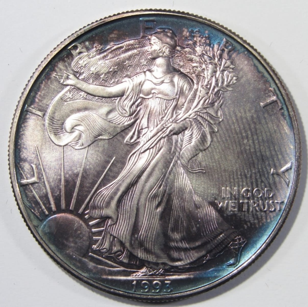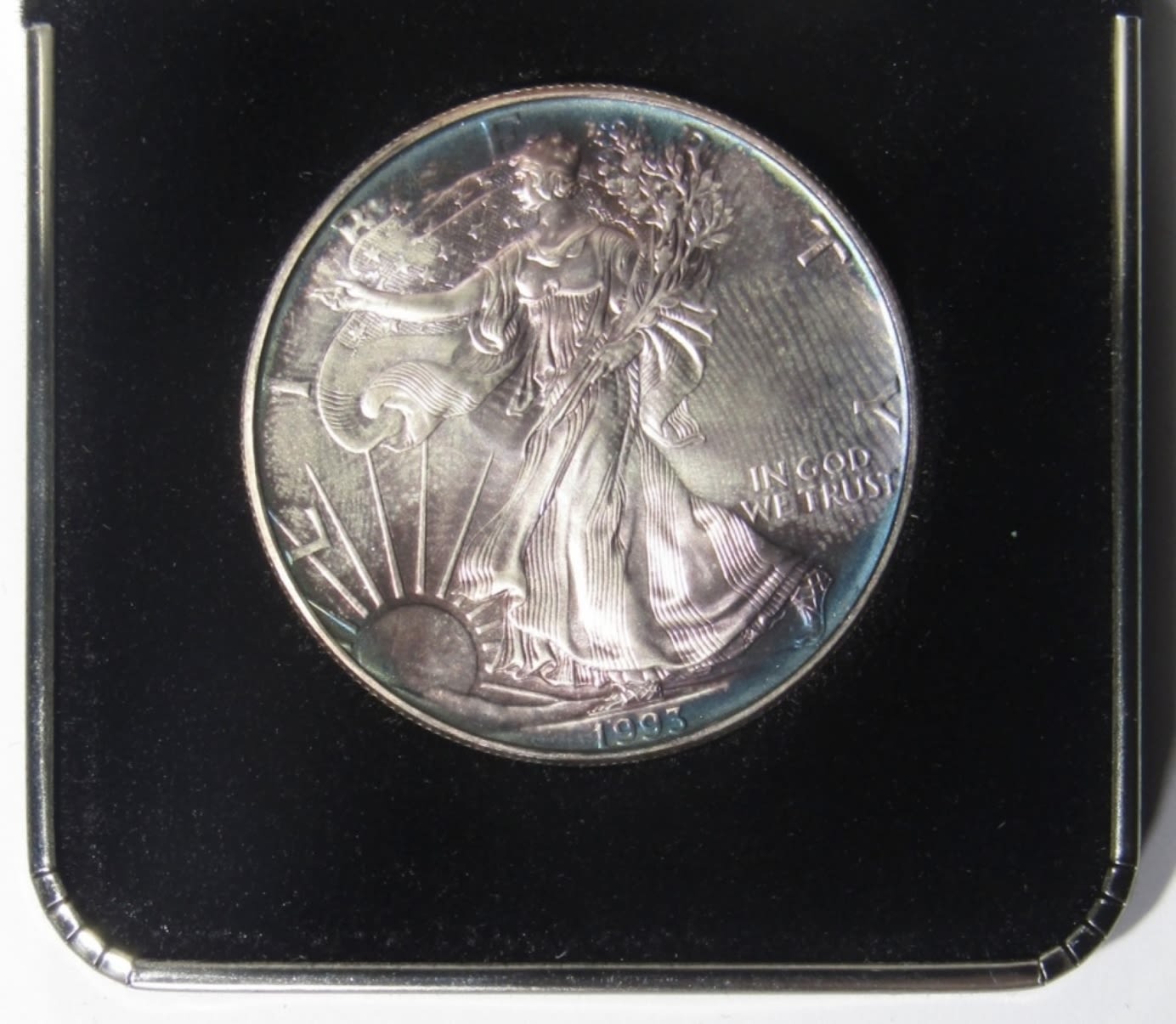 RAW COIN IN VELVET DISPLAY CASE WITH SLEEVE.