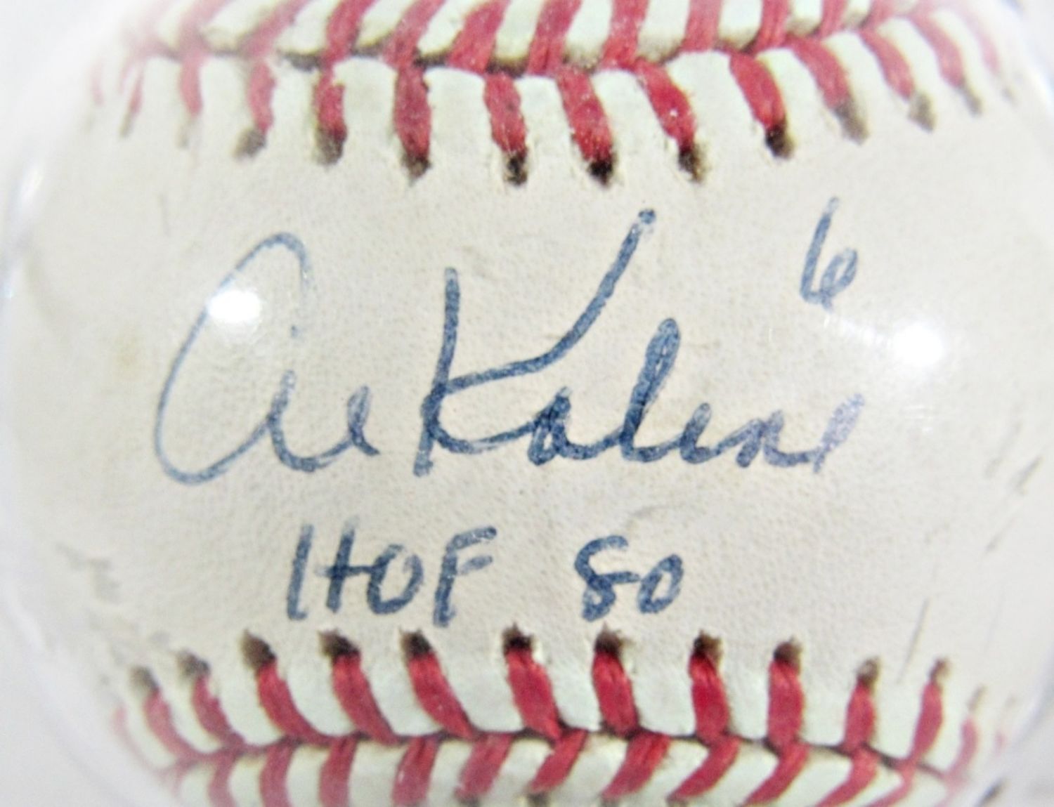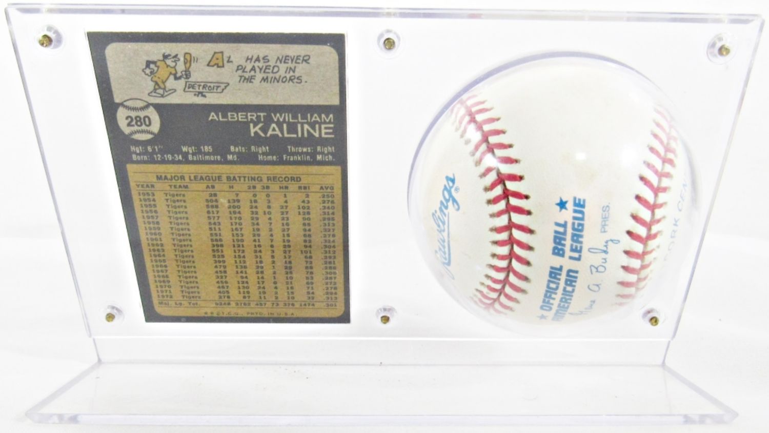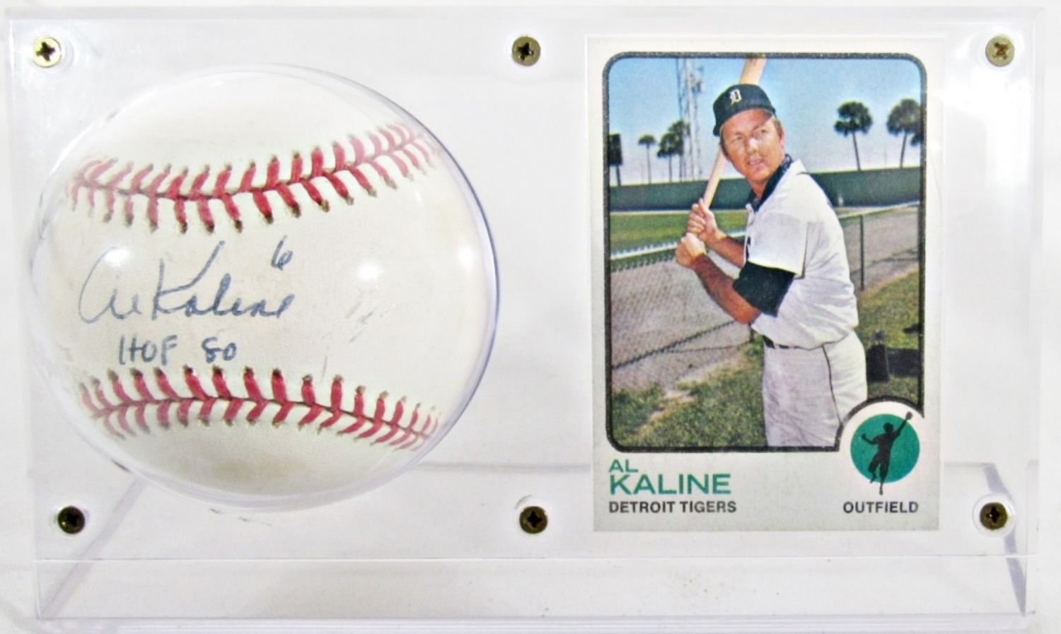 HOF 80 AUTOGRAPHED BASEBALL, 1973 BASEBALL CARD, IN SCREW DOWN HOLDER, NO COA