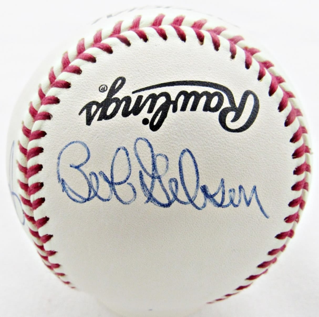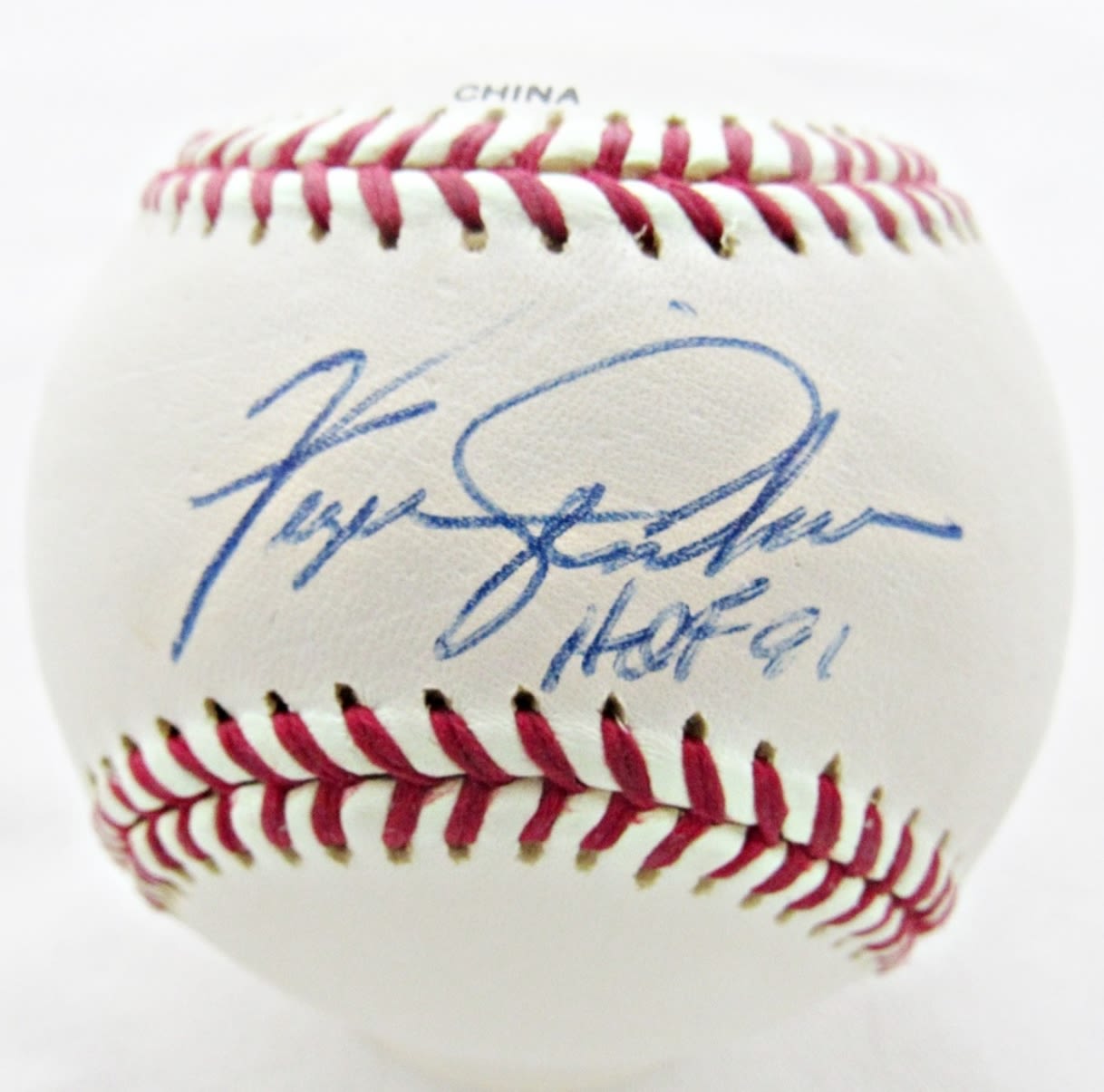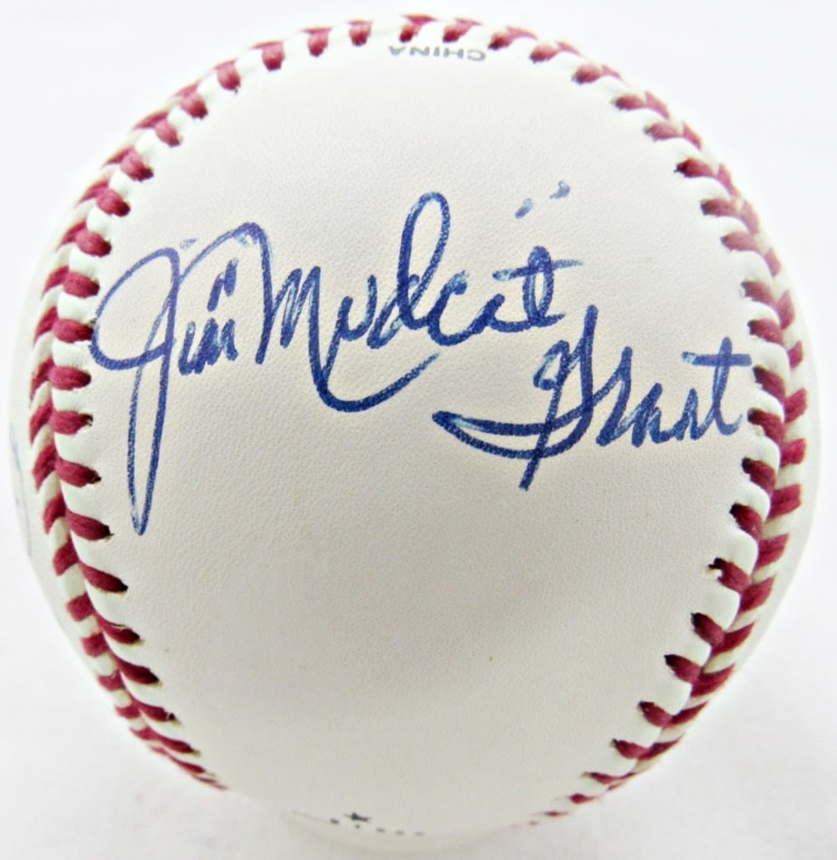 BOB GIBSON, JIM “MUDCAT” GRANT, FERGIE JENKINS HOF 91 AUTOGRAPHED OFFICIAL LEAGUE BASEBALL IN CUBE HOLDER, NO COA