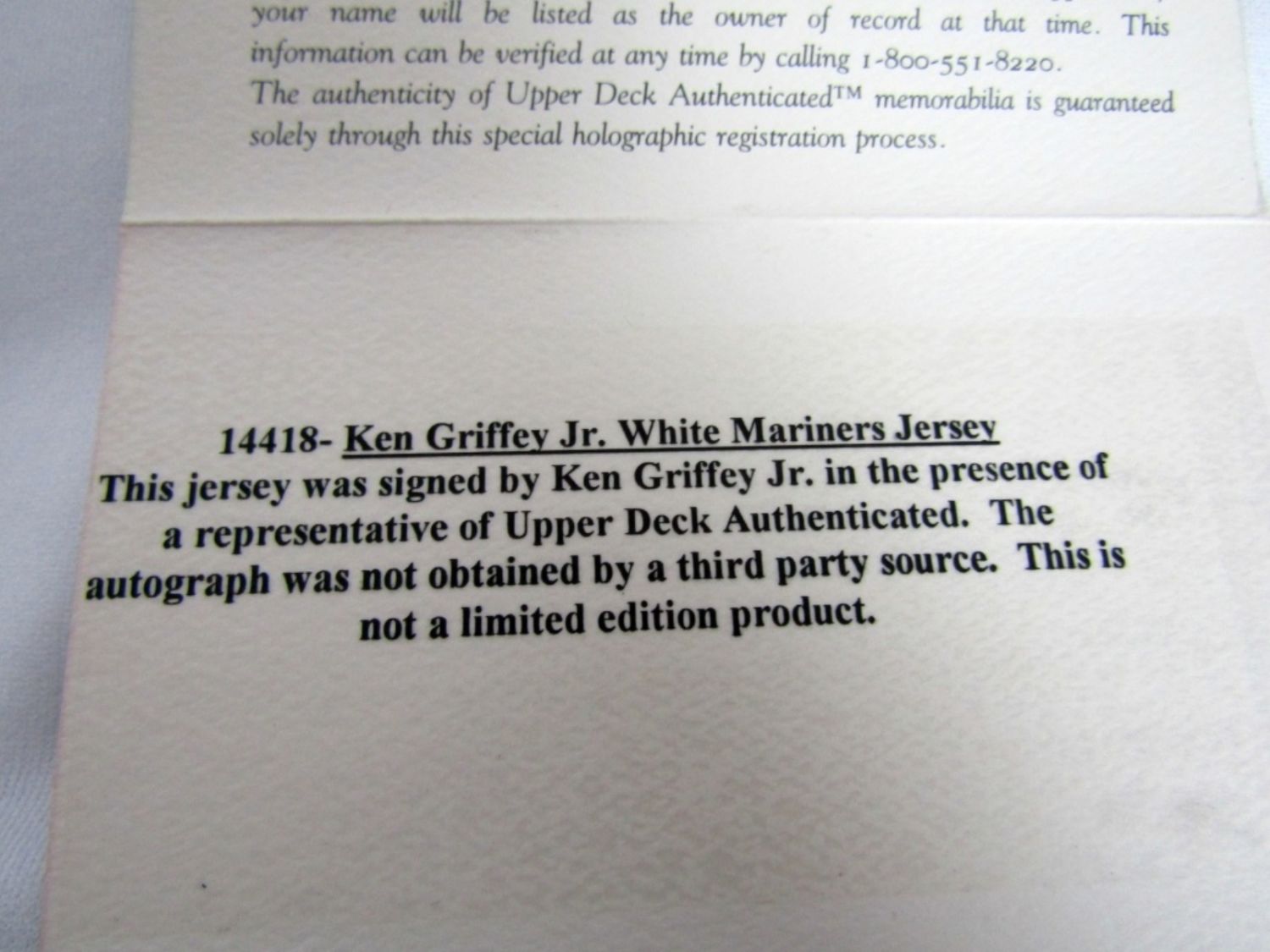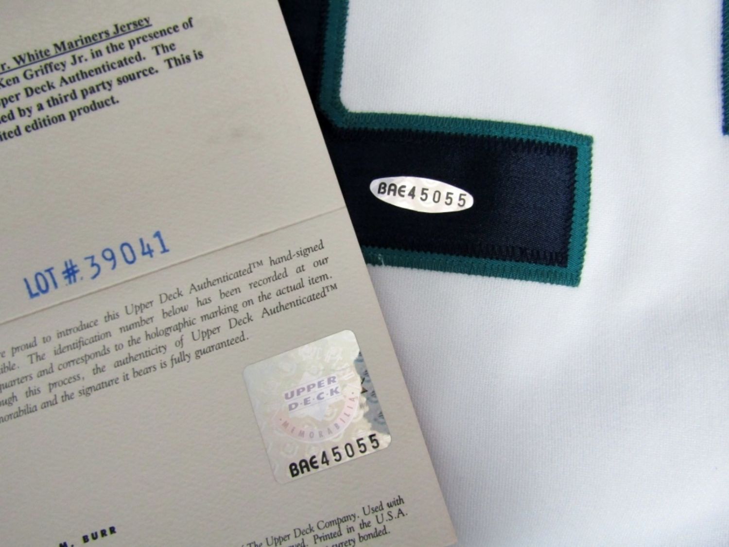WHITE MARINERS JERSEY #24 KEN GRIFFEY JR AUTOGRAPHED with UPPER DECK COA