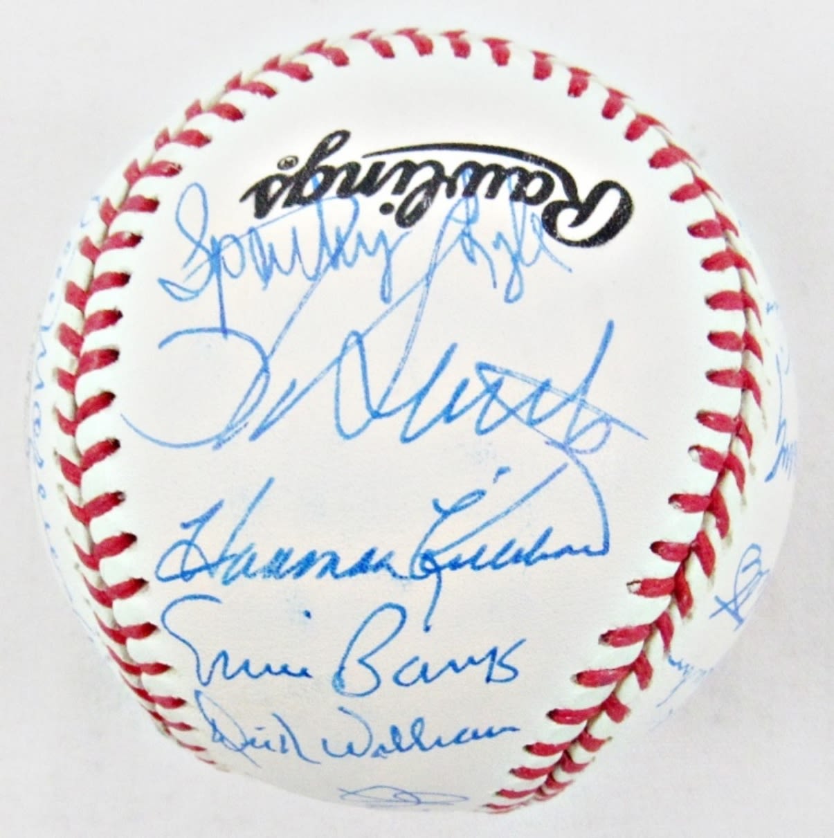 MULTI-SIGNED BASEBALL – AL KALINE & GREG NETTLES on SWEET SPOT, HARMON KILLEBREW, ERNIE BANKS, DICK WILLIAMS BROOKS ROBINSON, PHIL NIEKRO, ENOS SLAUGHTER, FERGIE JENKINS, RALPH HOUK, WARREN SPAHN, JIM BUNNING, BILLY