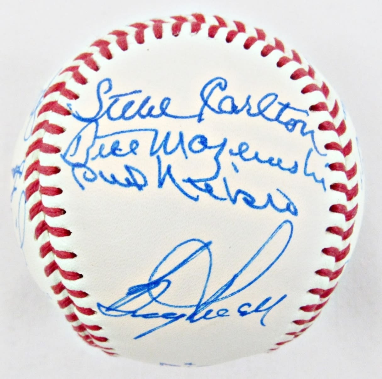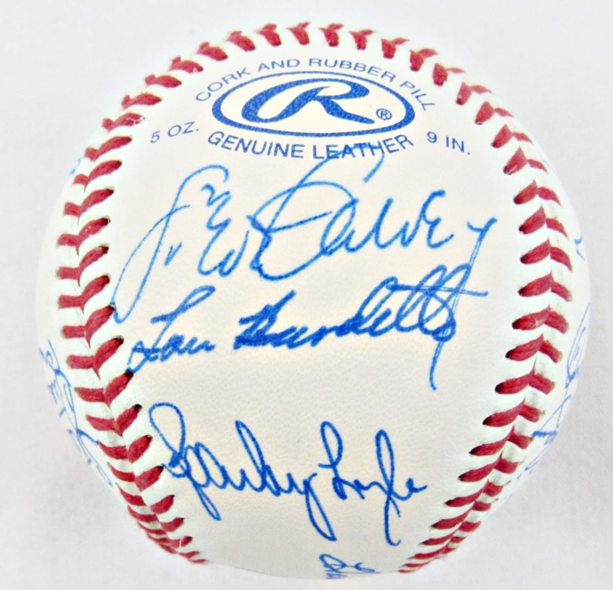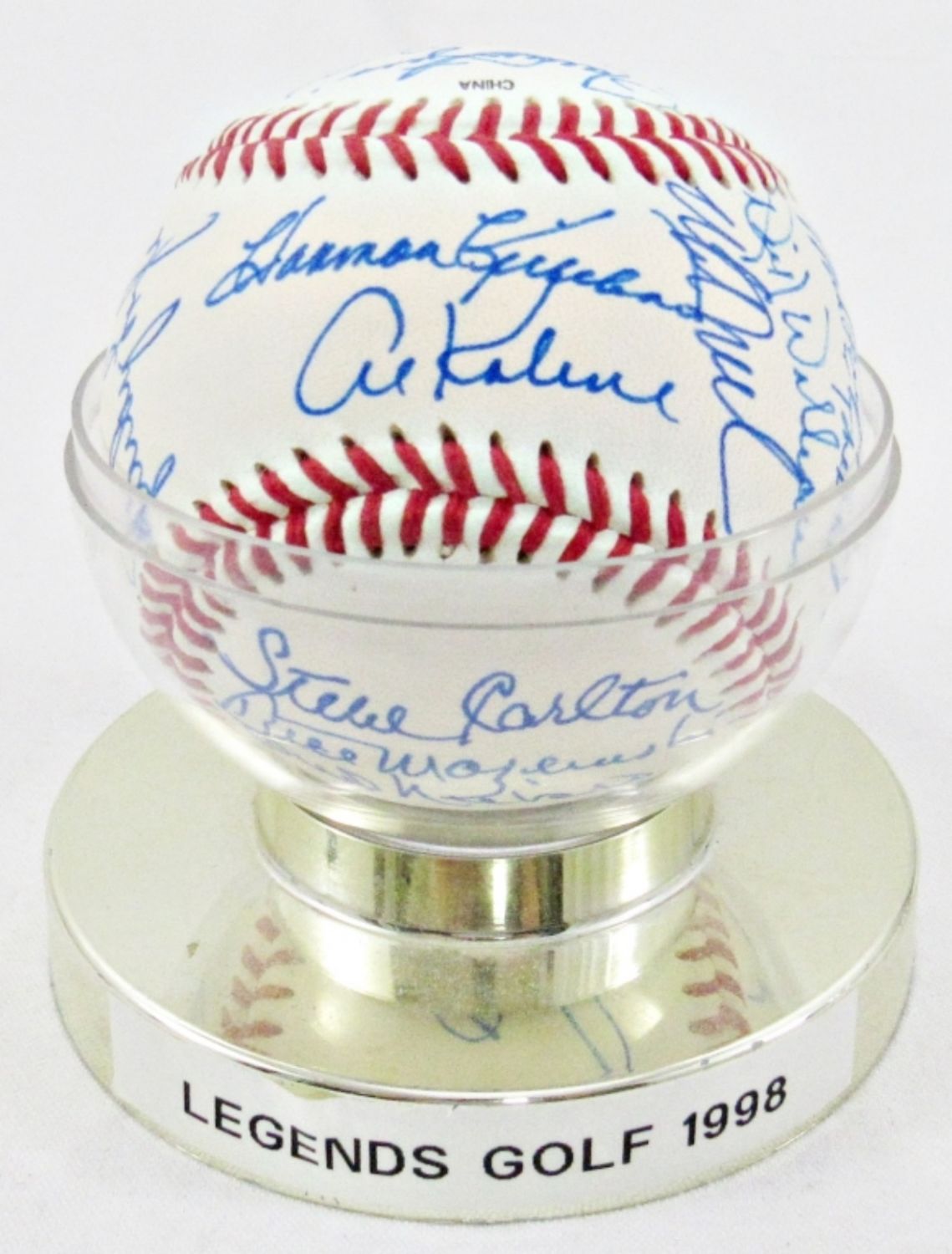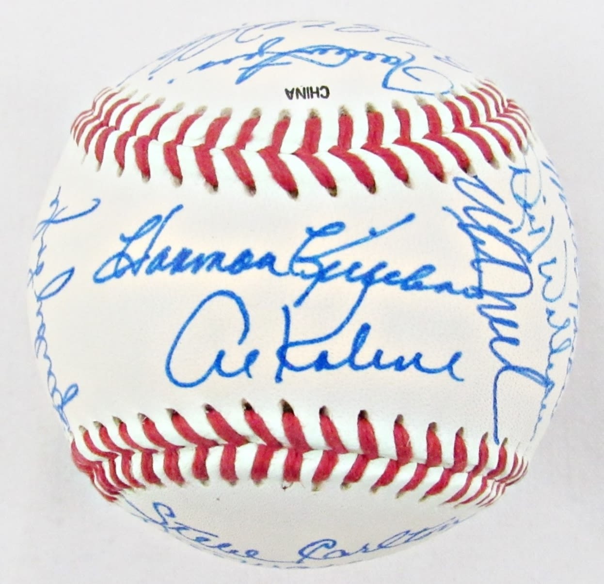 MULTI-SIGNED BASEBALL – AL KALINE & HARMON KILLEBREW on SWEET SPOT, SPARKY LYLE, FRED LYNN, DICK WILLIAMS, BILL WILLIAMS, FERGIE JENKINS, RALPH HOUK, STEVE CARLTON, PHIL NIEKRO, BILL MAZEROSKI & OTHER GREATS – 19