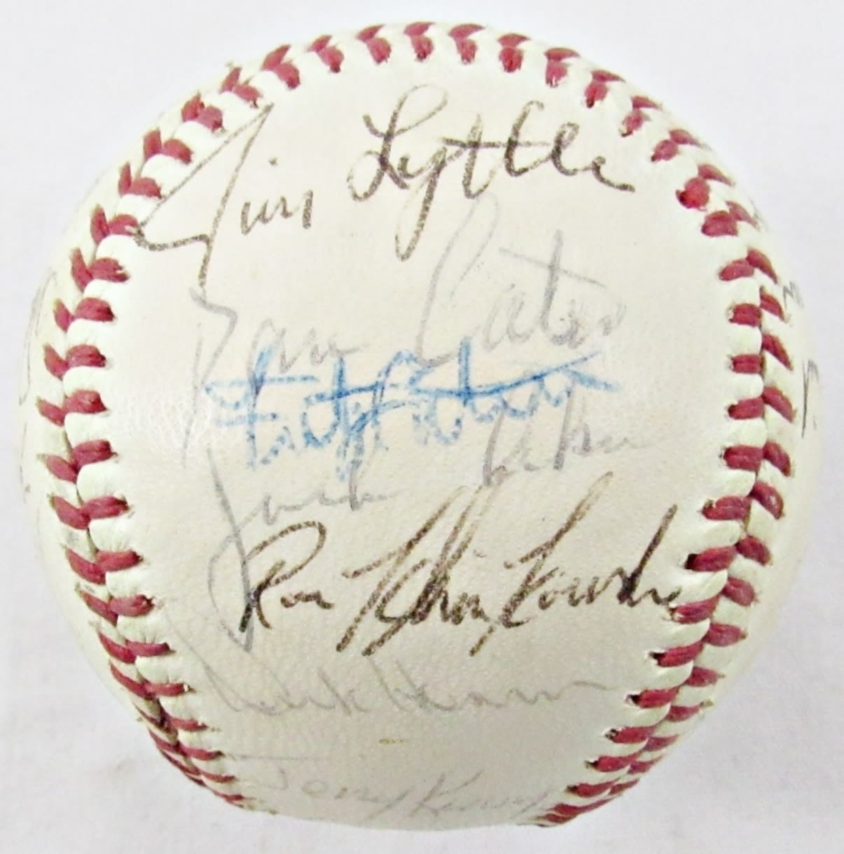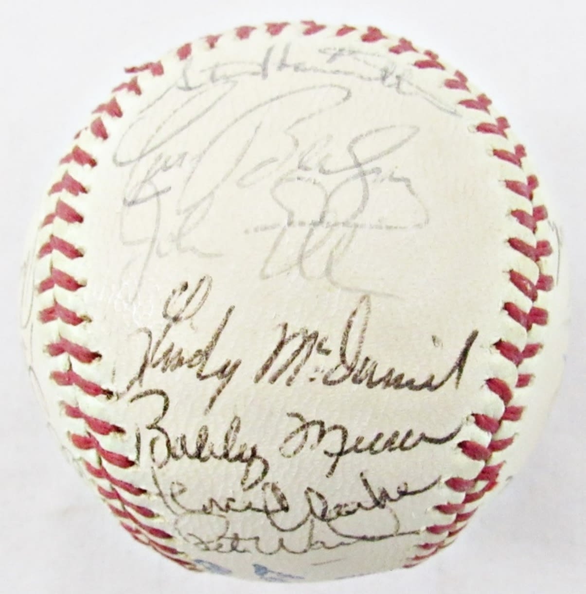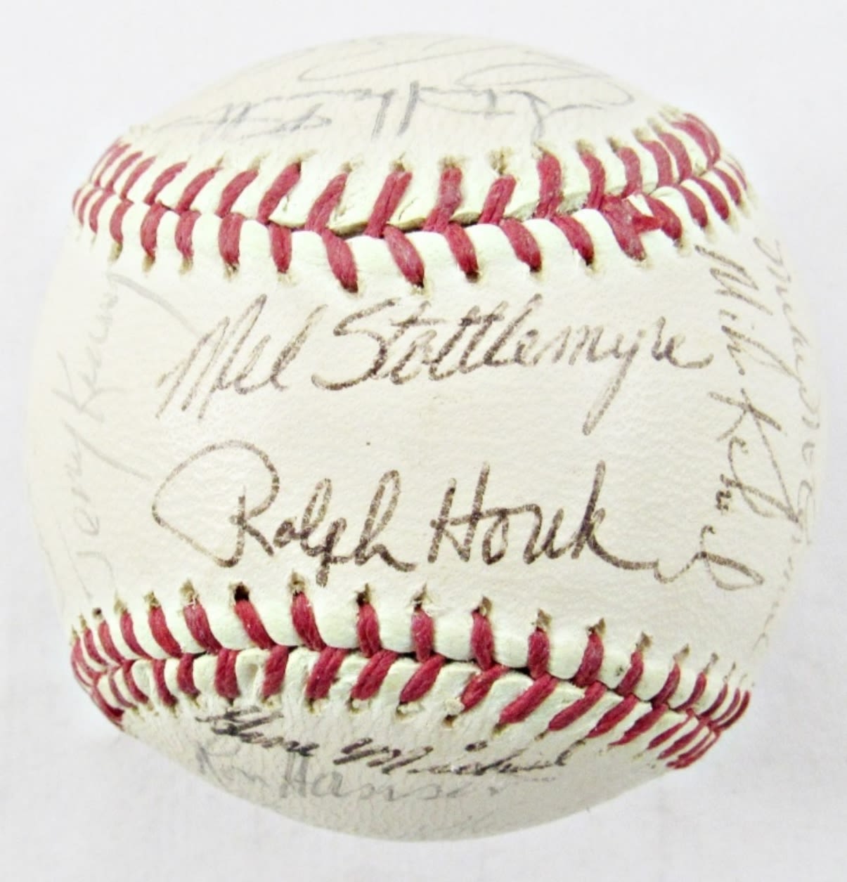 MEL STOTTLEMYRE & RALPH HOUK on SWEET SPOT, LINDY McDANIEL, BOBBY MURCER, RON WOODS, JIM HEGAN, RON HANSEN, JIM LYTTLE, THURMON MUNSON, ELSTON HOWARD plus (18) OTHER SIGNATURE for you to IDENTIFY – NO COA
