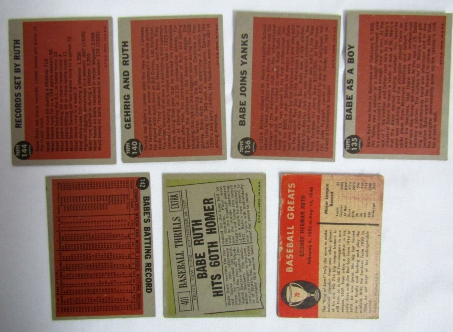 #135, #136, #140, #142, #144 NICE EX plus 1961 TOPPS #401 VGEX & 1961 FLEER #75 GOOD