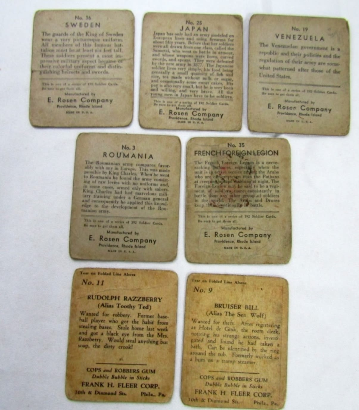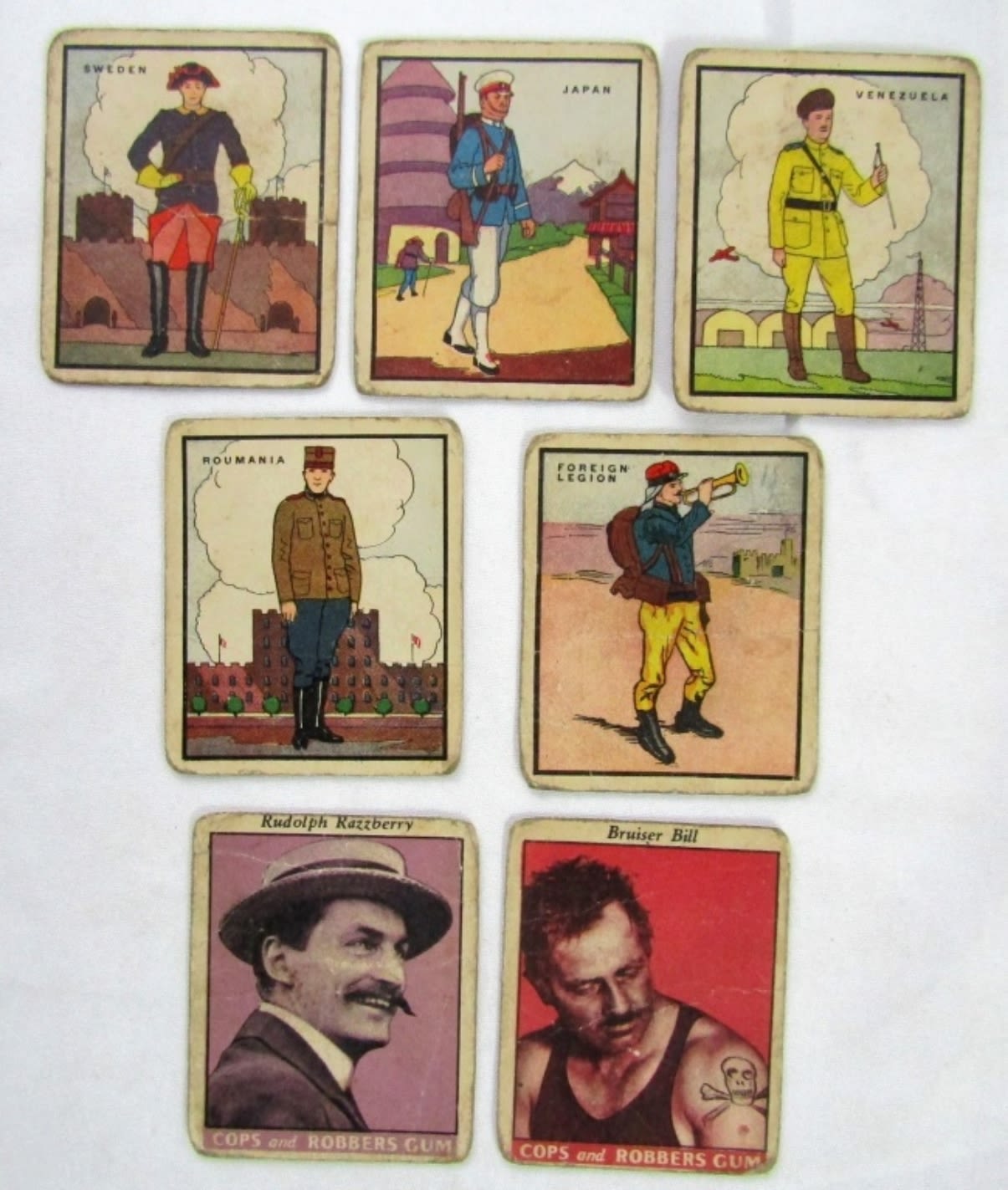 (2) COPS AND ROBBERS GUM R36, (5) SOLDIER CARDS R139 – ALL DIFFERENT