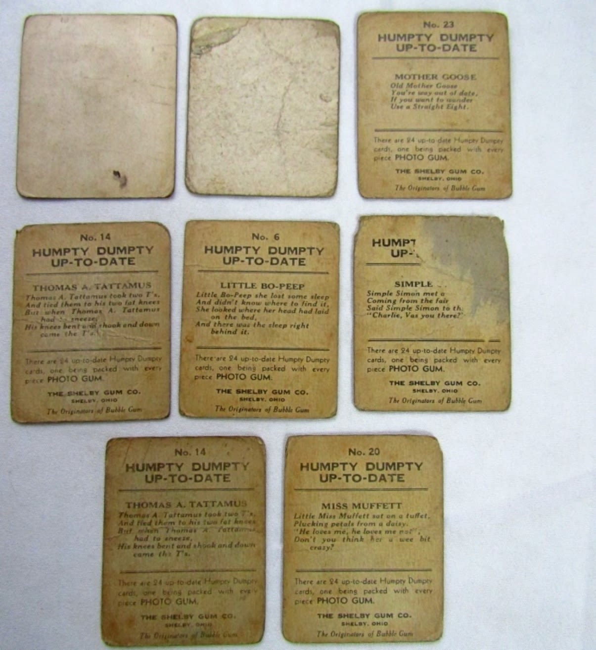 1933 General Gum Movie Stars card R-97-2 JOAN BENNETT, 1933 GOUDEY TOM BRIDGES BLANK BACK, (6) 1930 R70 SHELBY GUM HUMPTY DUMPTY UP-TO-DATE