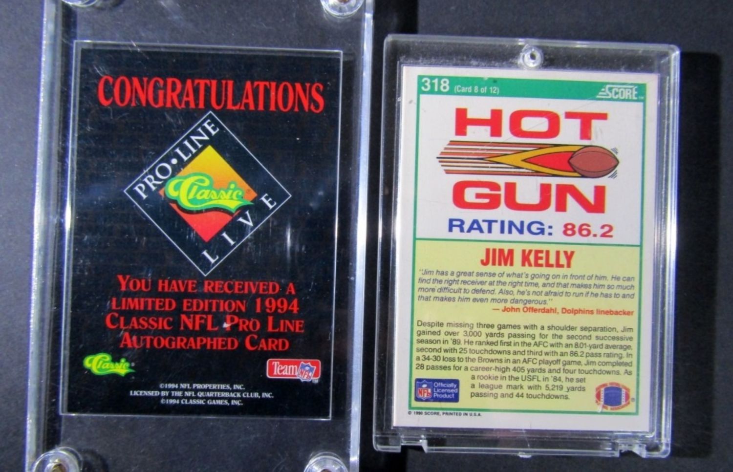 Classic Pro Line Live #650/925 plus JIM KELLY AUTO SCORE HOT GUN CARD
