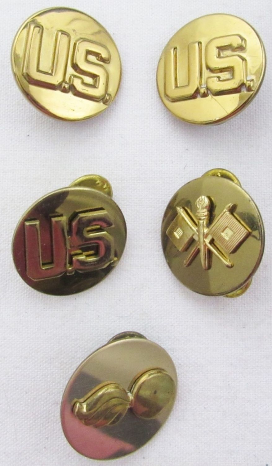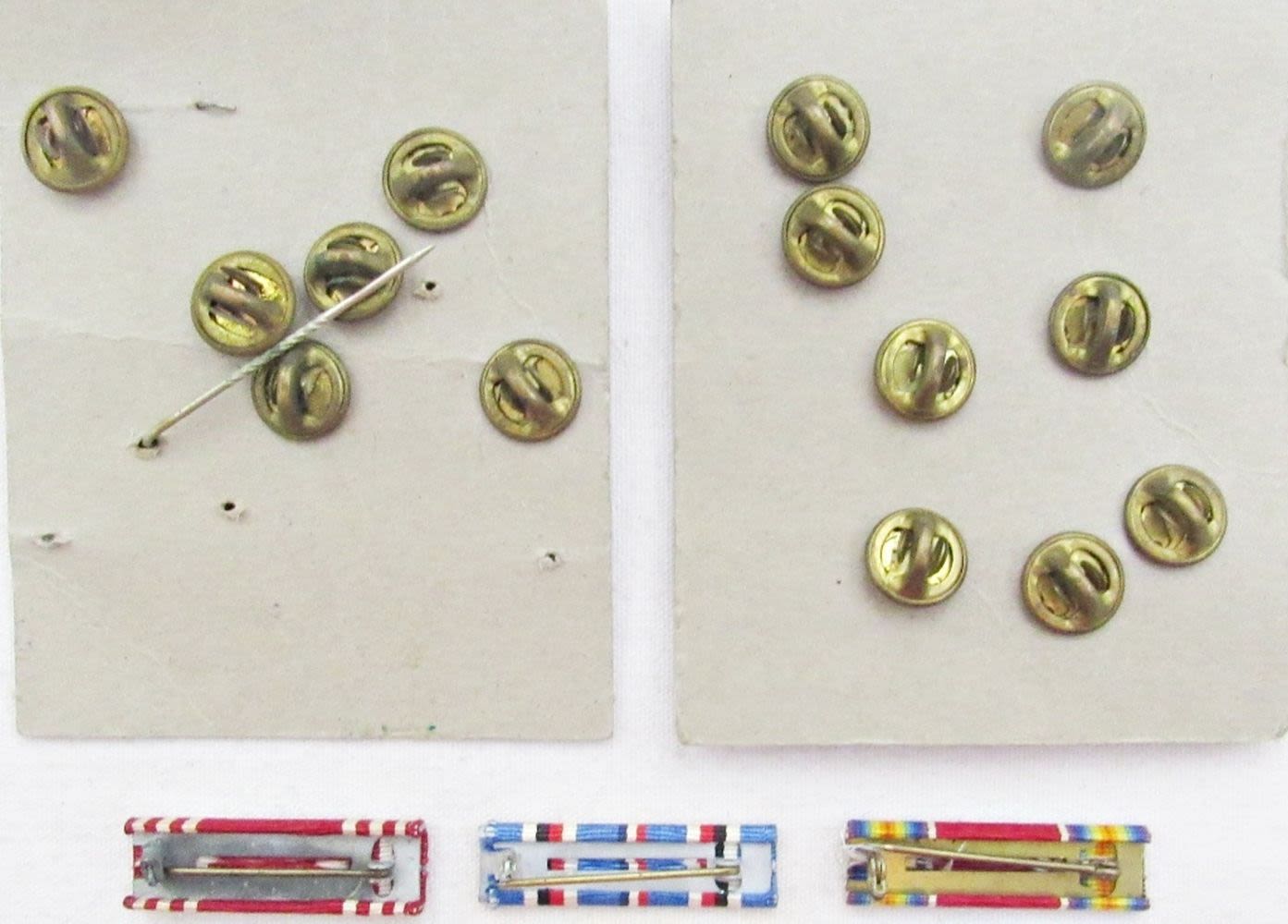 (8) INSIGNIA COLLAR / LAPEL PINS – VARIOUS TYPES (5) RIBBONS