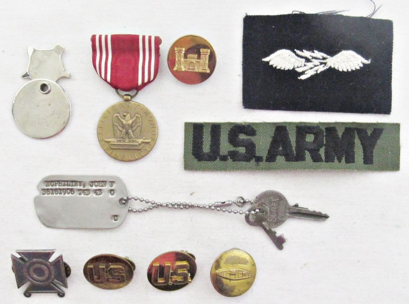 GOOD CONDUCT MEDAL, SHARPSHOOTER PIN, 9th INF DIV SCREWDRIVER & MORE