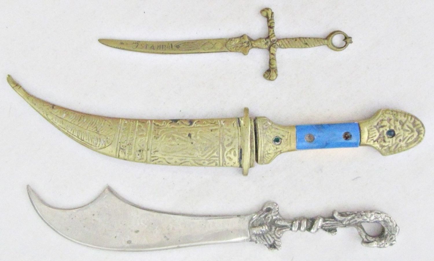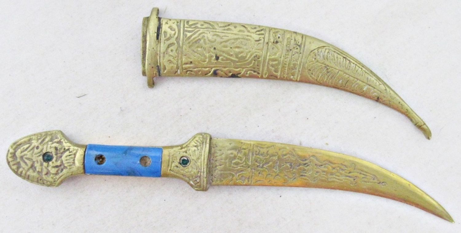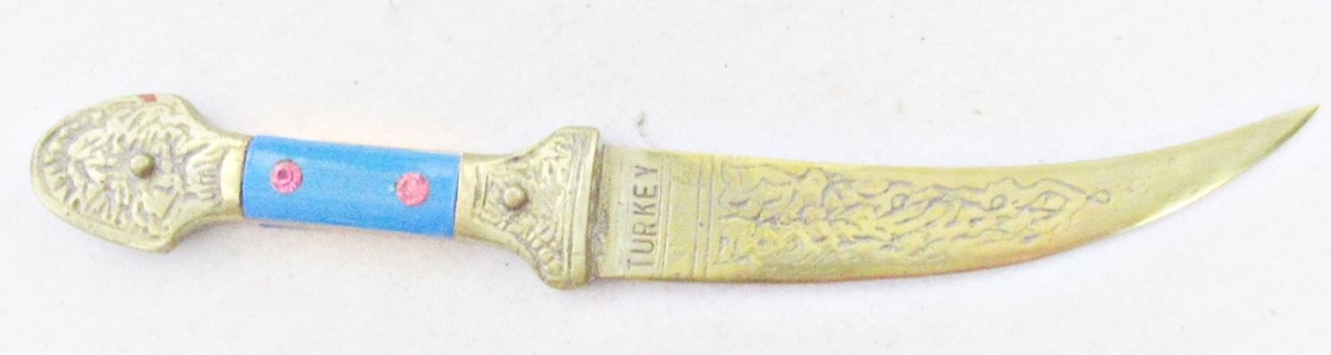Turkish Style Dagger Knife w/ Sheath Brass Etched Decorative, SOUVENIER FOCCIA & ISTAMBUL LETTER OPENER