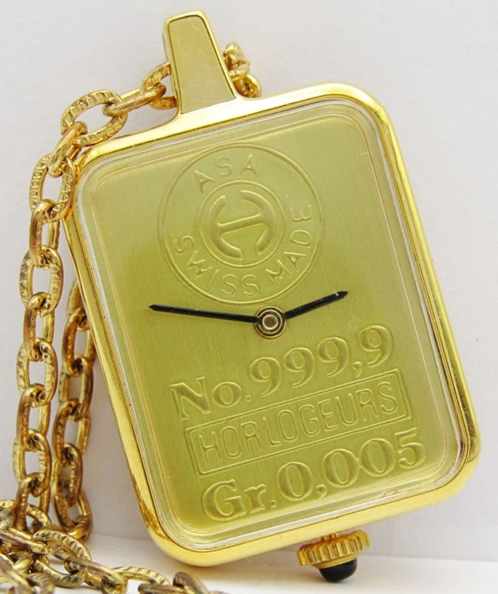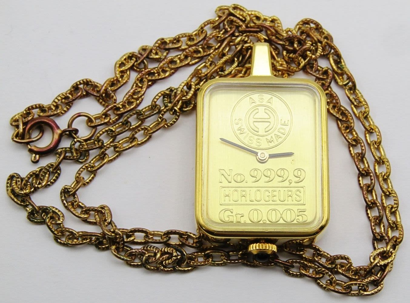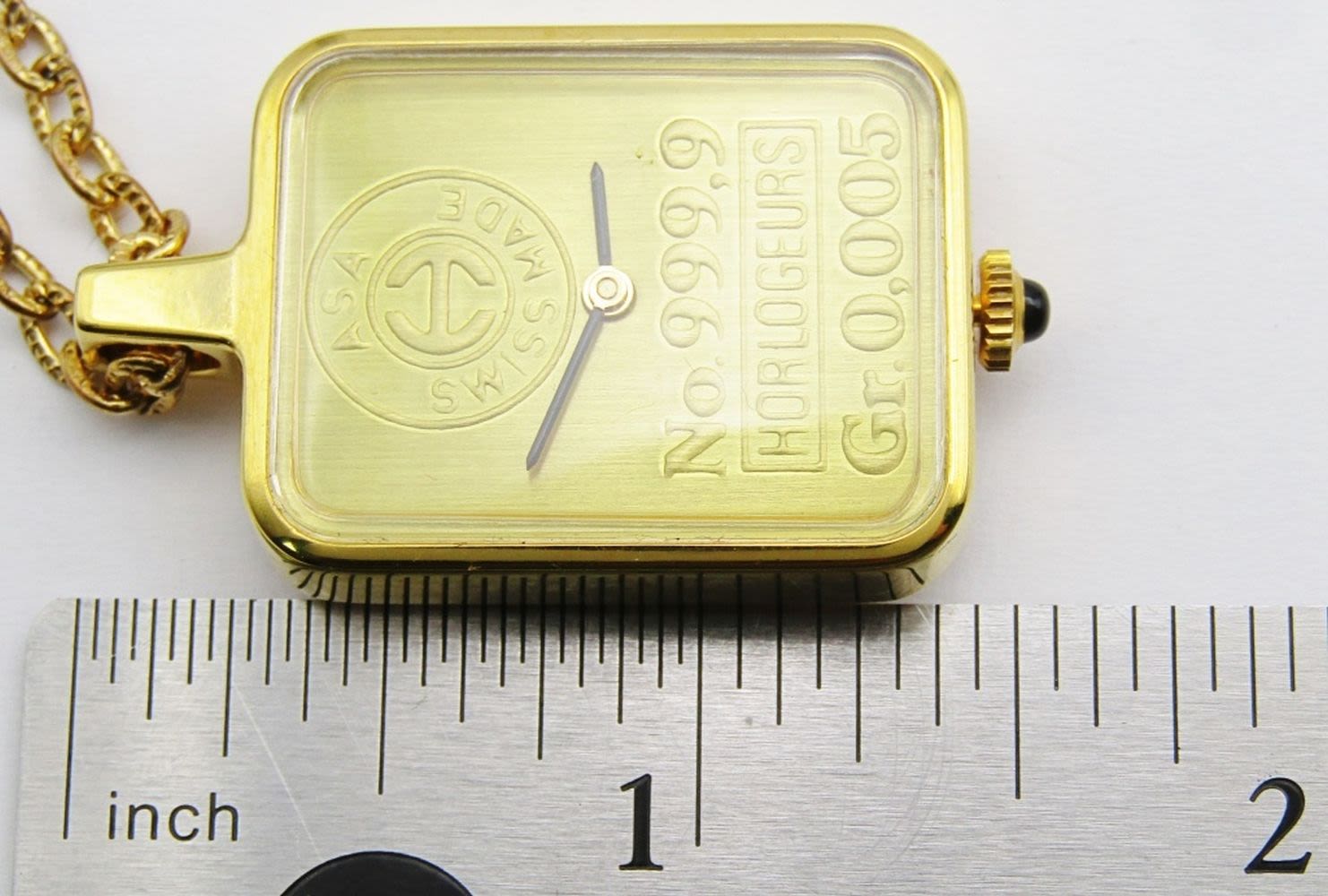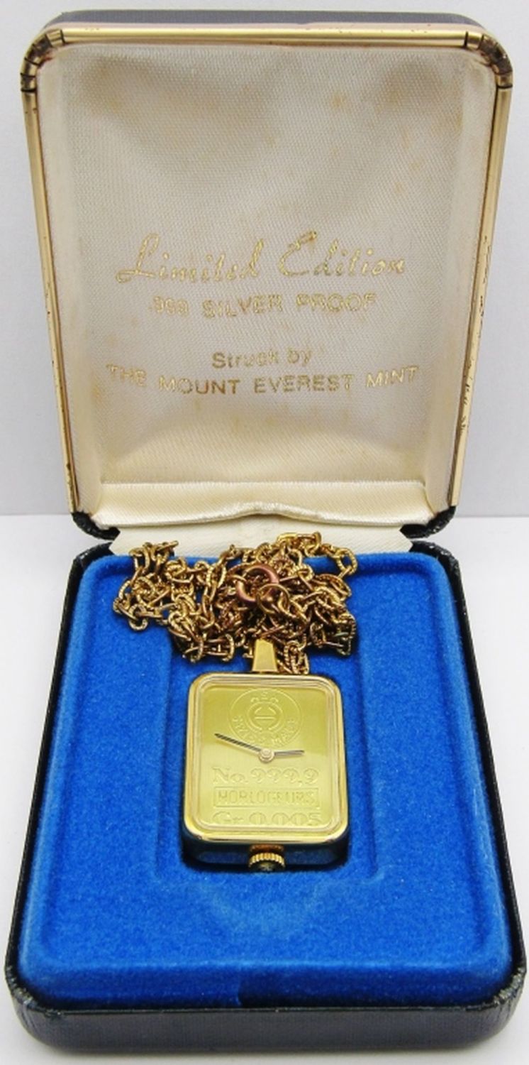 24 Inch Necklace; .999 Silver Proof Struck by The Mount Everest Mint; Rectangular Gold Bar Shaped Pendant; In original box.