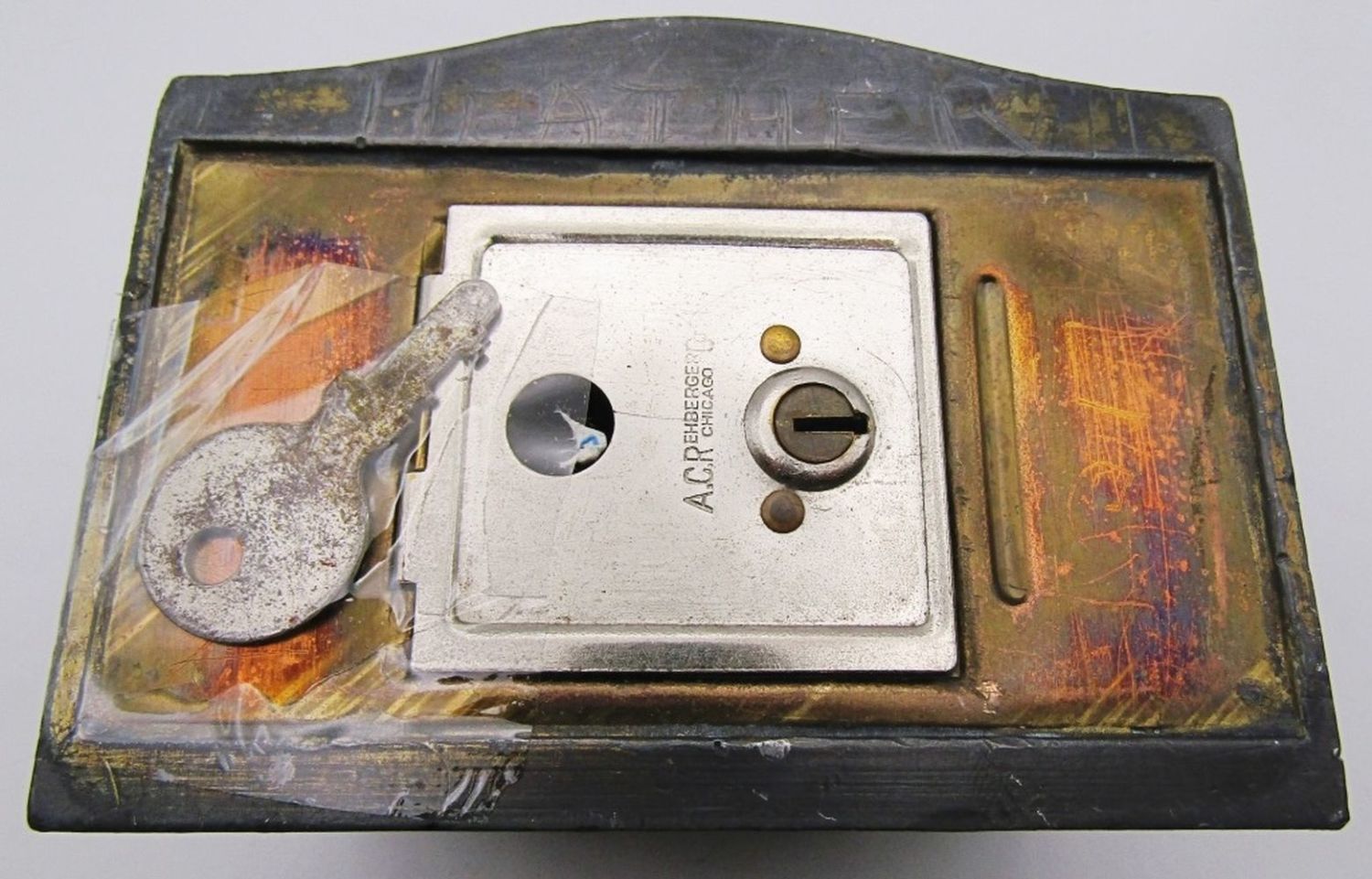 Antique Pittsburgh, PA Bank in Heavy Metal Brass Finish (Please See Photos for Condition), With KEY! Height 3 1/4 in., Length 4 1/4 in.