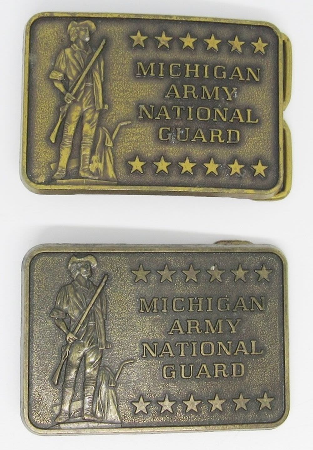 Set of 2 Michigan Army National Guard Belt Buckles, Brass