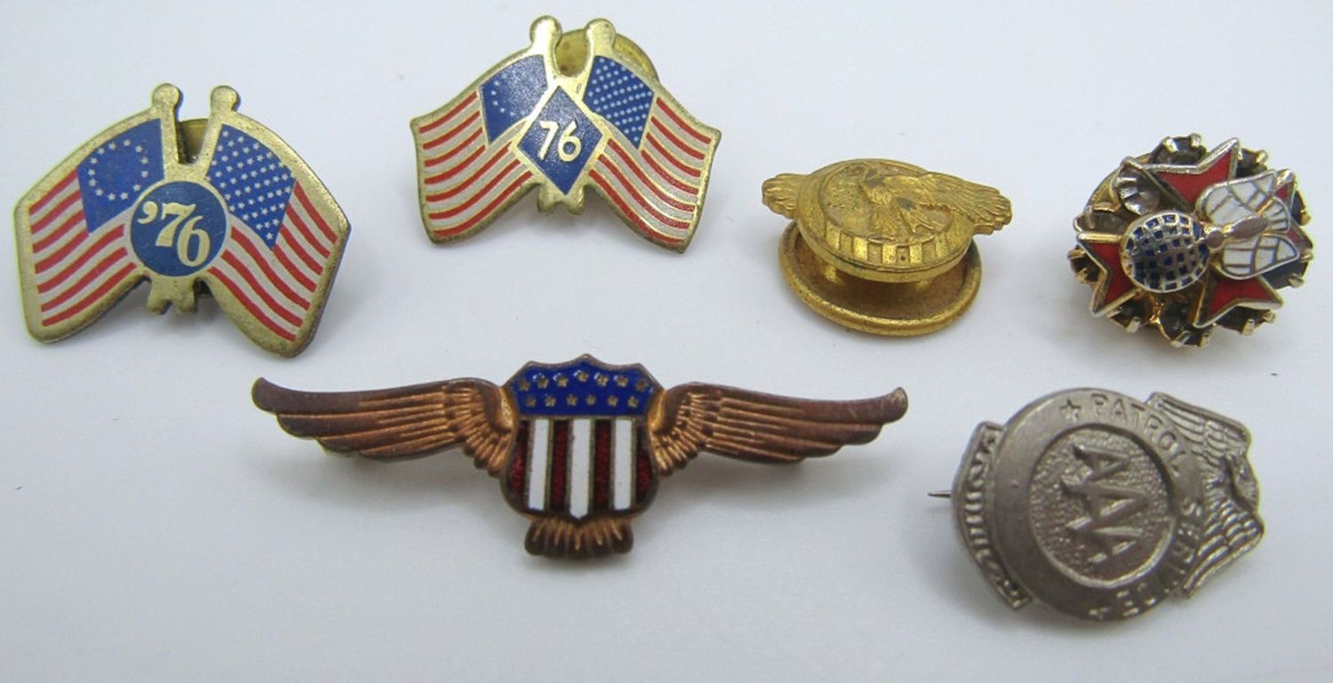 (6) VINTAGE & MILITRAY PINS