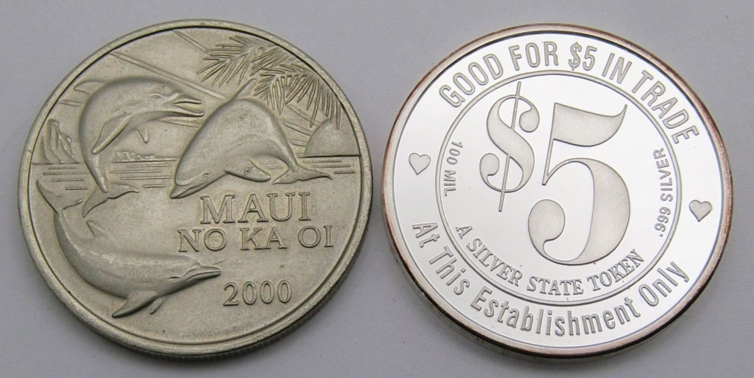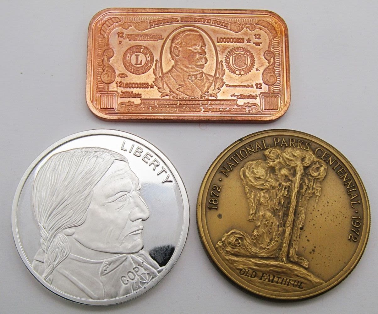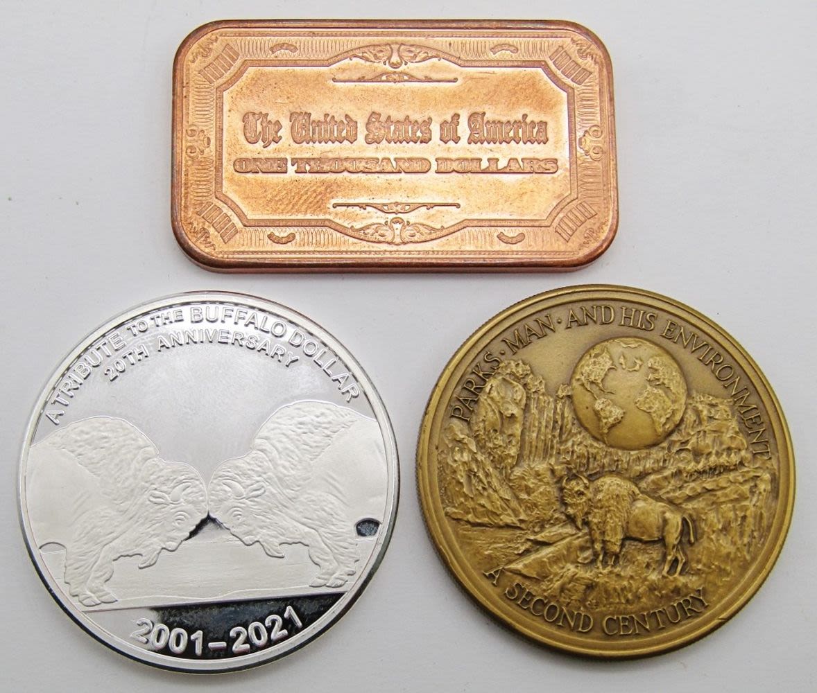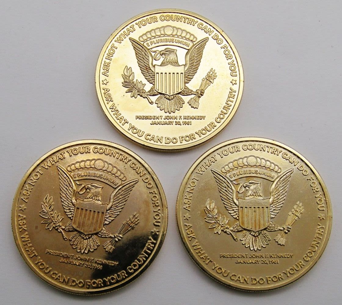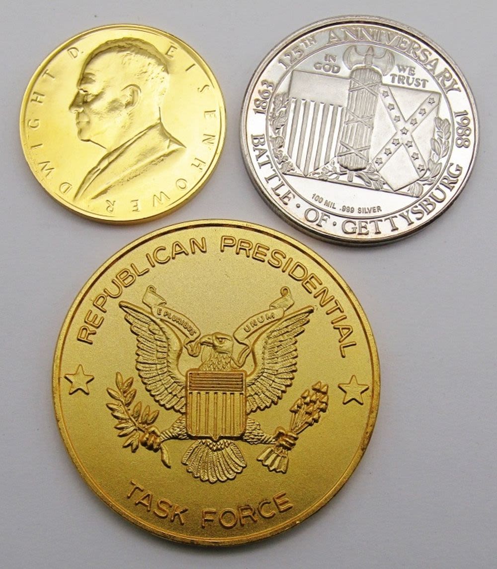 1984 Ontario; Elizabeth & Philip; HRH The Prince of Wales & Lady Diana Spencer 1981; (3) Kennedy Fallen Heroes; Medal of Merit Ronald Reagan; Shady Lady Ranch $5 Trade Token; Maui No Ka Oi 2000 Trade Dollar; 125th