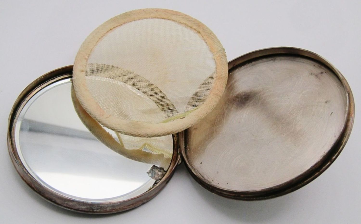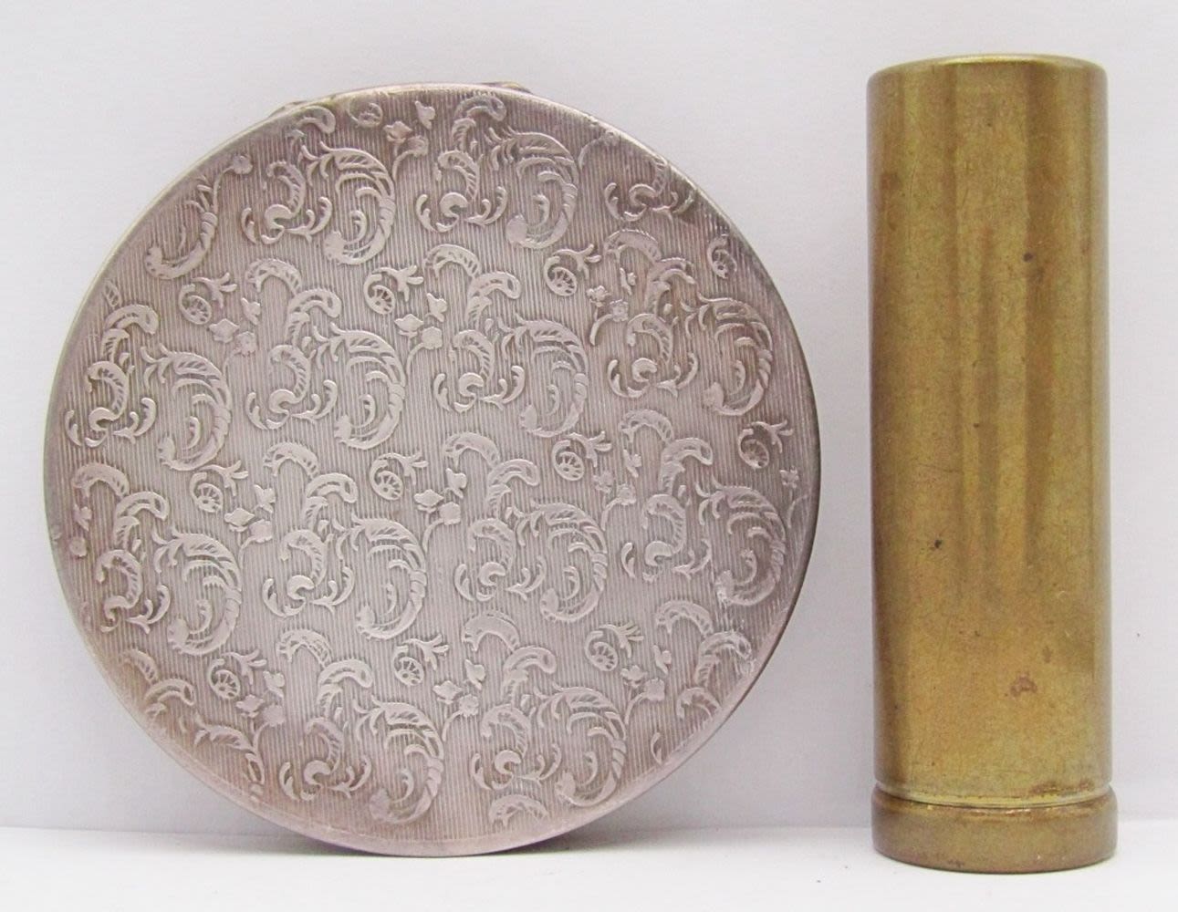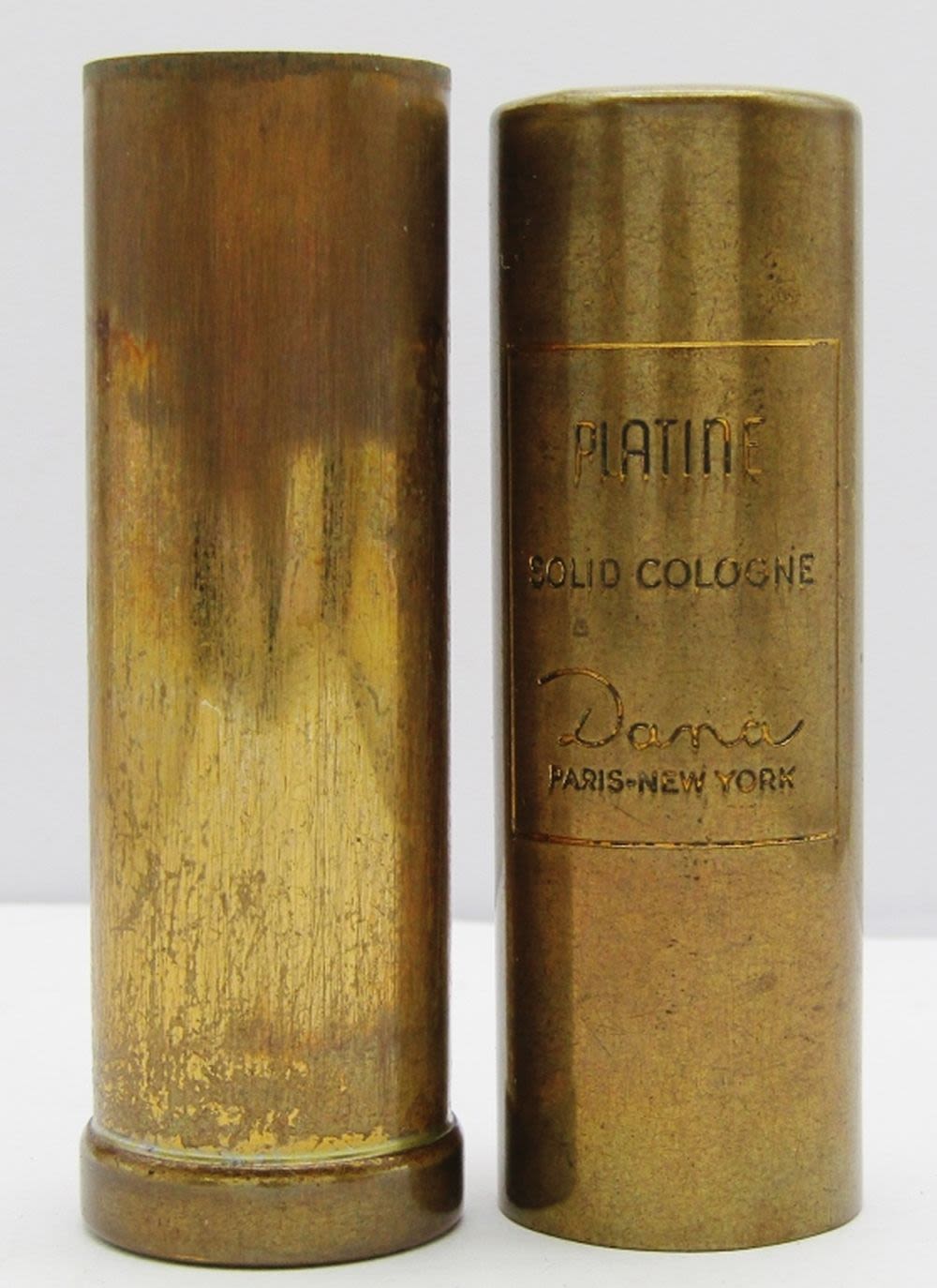 Platine Solid Cologne Dana Paris – New York 1/2 OZ Case Tube; Vintage Hans Jensen Denmark Silver Plate Compact (Mirror Has Imperfection, see Photos for more info).
