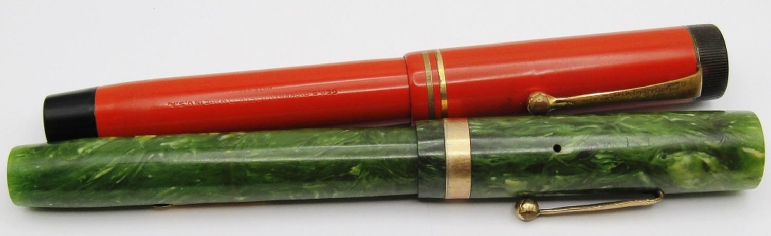Maywood Fountain Pen Warranted 14kt 8 Nib; Parker Geo S. DuoFold Burnt Orange Fountain Pen Made In USA; Used Conditions, Good!