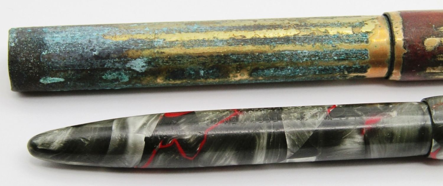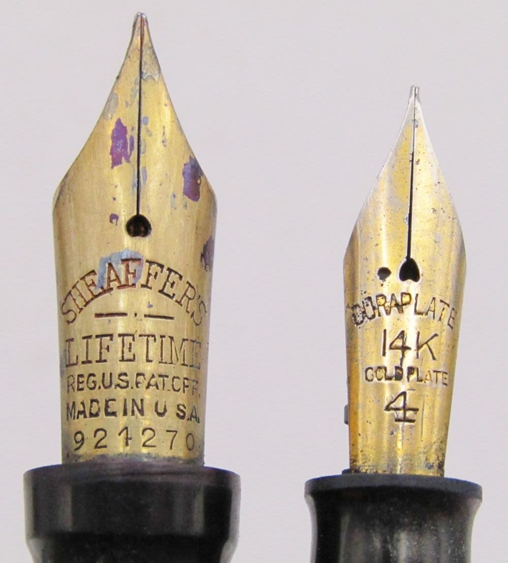 Sheaffer’s Lifetime Reg. US. PAT. CFF Made in USA 921270 (This pen has corrosion on pen cap and body); Duraplate 14k Gold Plate 4; Both untested!