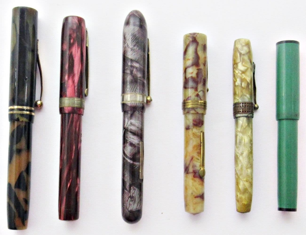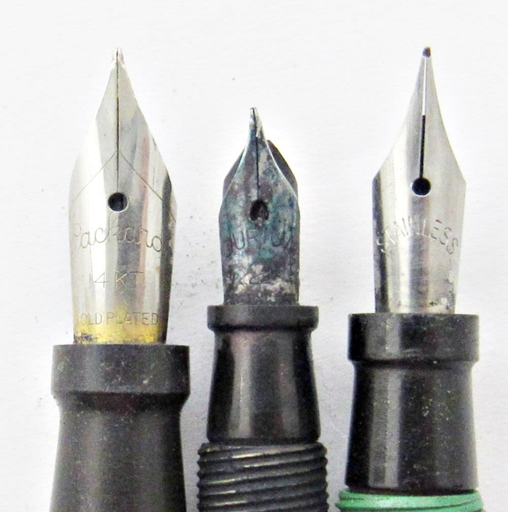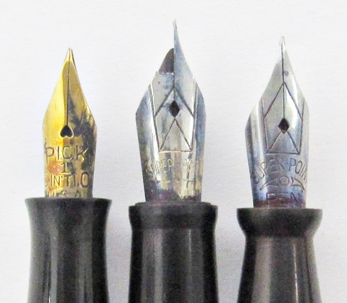 Peter Pan – Durium 2 Nib; Congress – Super Point Pen Nib; Majestic – Super Point New York Nib; Packard 14KT Gold Plated Nib; The Pick Pen Co. – Pick 1 Cin’ti. O. Nib; Stainless Nib (No Name); All Untested.