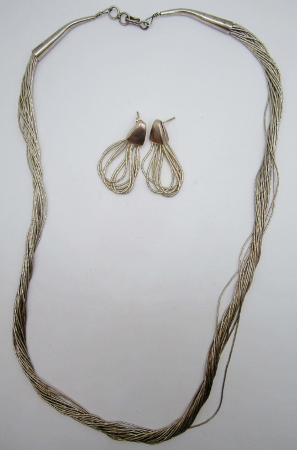 24in in length with a hook clasp, marked sterling, one earring is missing the backing both are marked with 925, 21.2 dwt