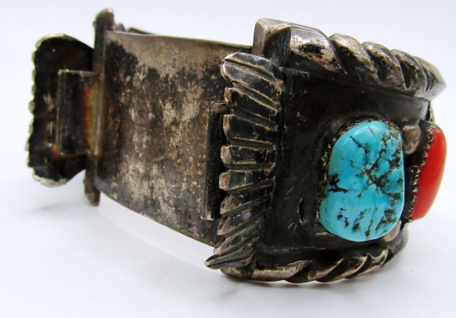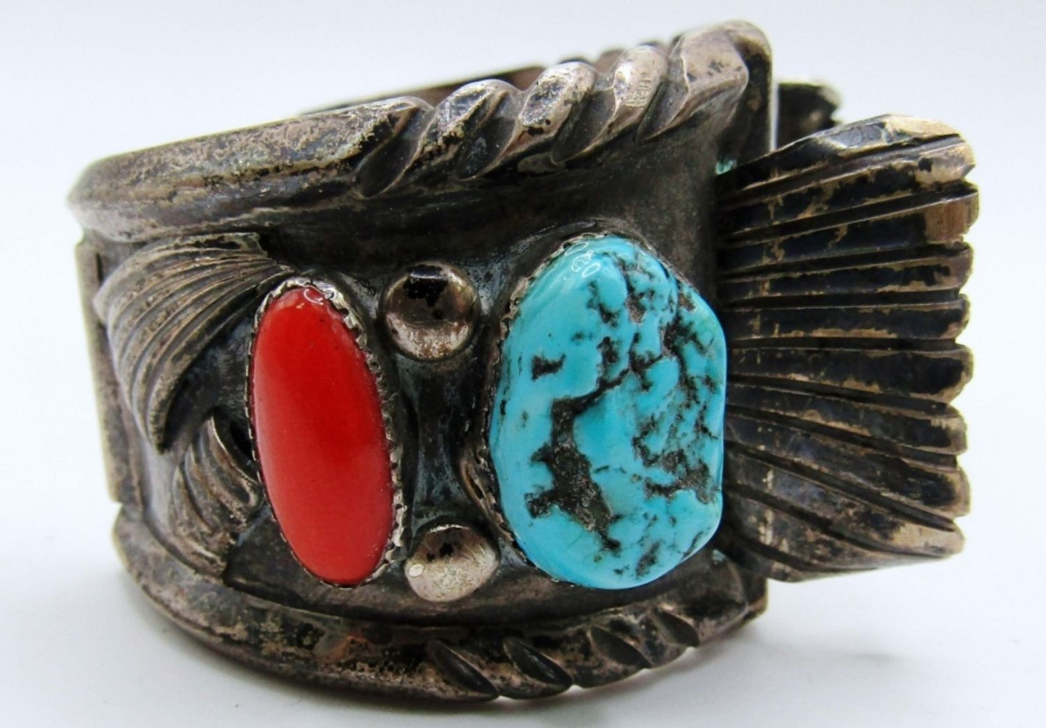 72dwt, marked inside with J. Martinez and aN arrow, has chucky turquoise and coral