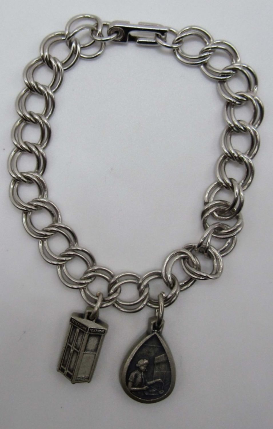 7in bracelet marked sterling, Two charms both say sterling made by ATTENDANCE ,14 DWT