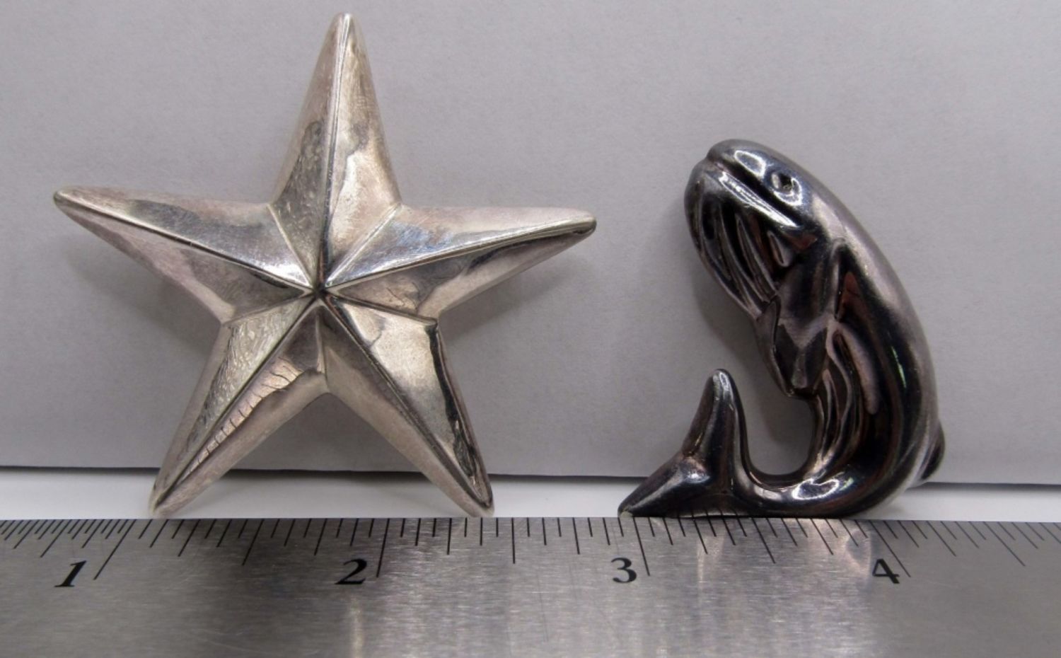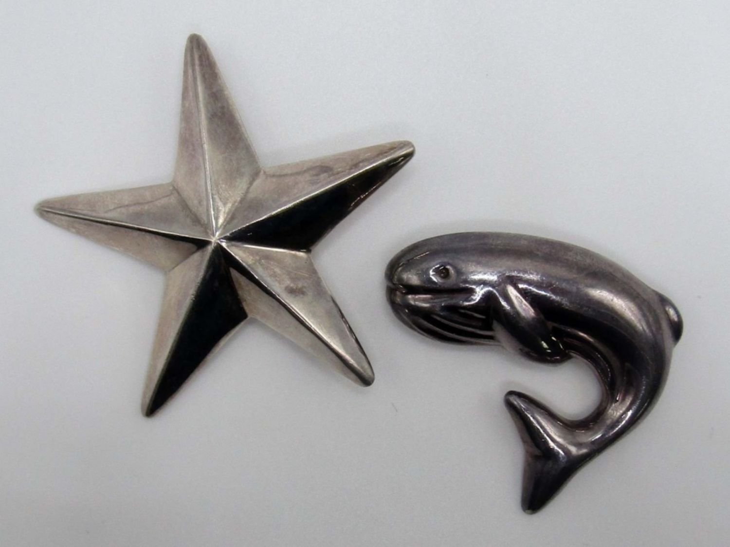 Star pin marked 925, whale pin marked 925, 15DWT