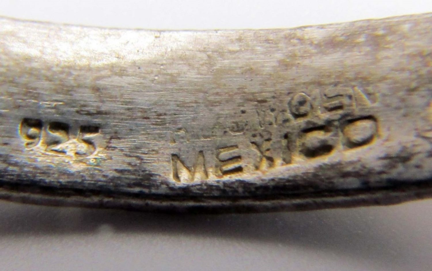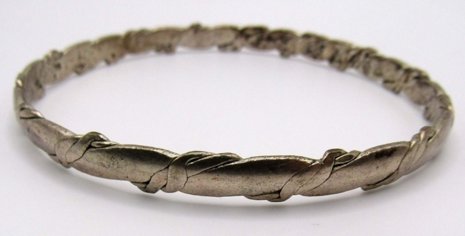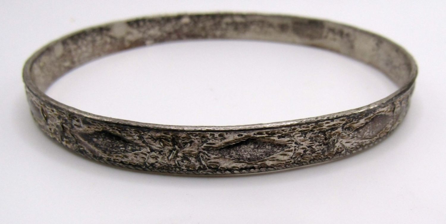 one hammered bangle with 925 and unreadable marks inside, Hammered with a design, marked Mexico 925 on the inside, 18 DWT