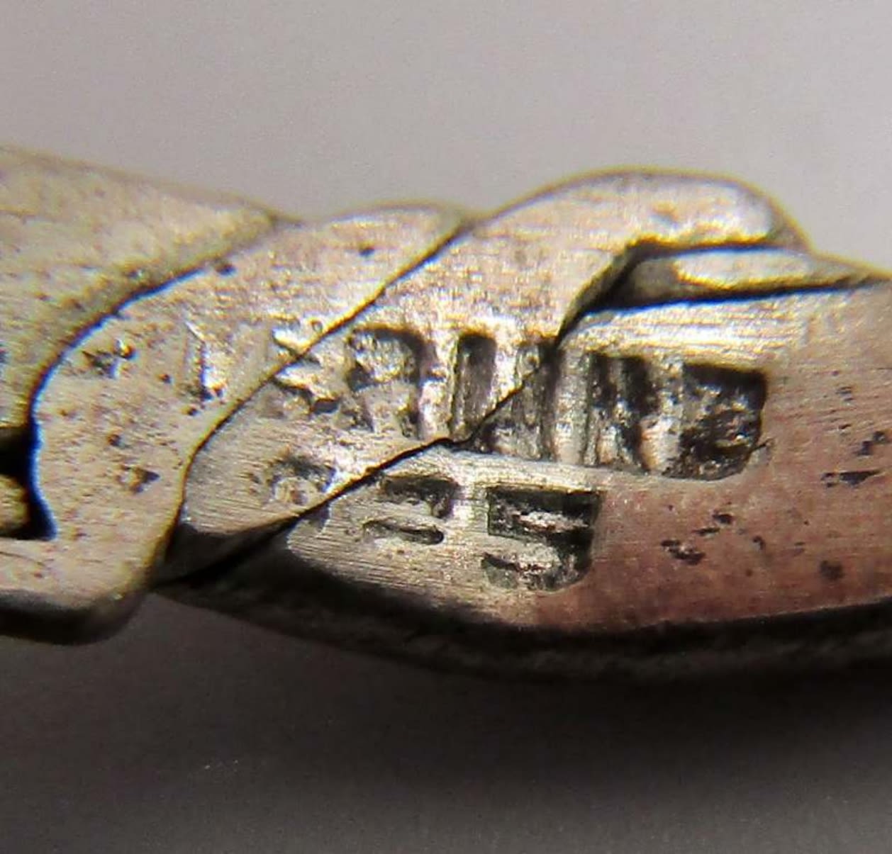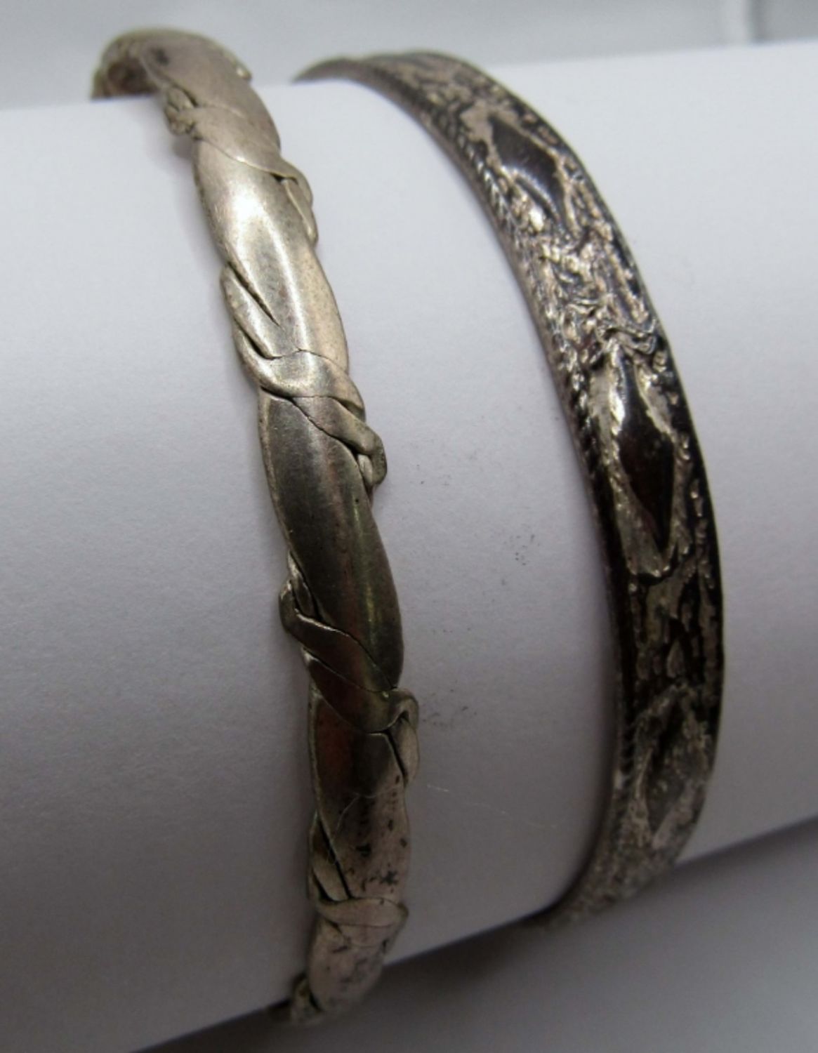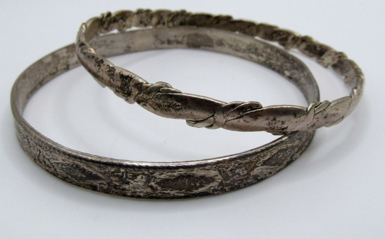 one hammered bangle with 925 and unreadable marks inside, Hammered with a design, marked Mexico 925 on the inside, 18 DWT
