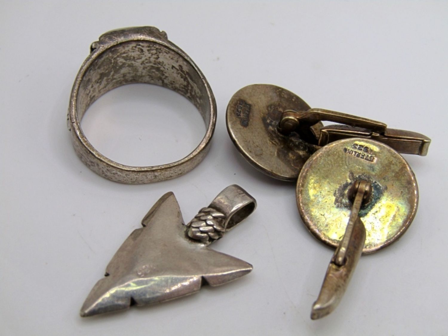 STERLING PENDANT & STERLING MENS RING SIZE 11 1/2 – 16 DWT