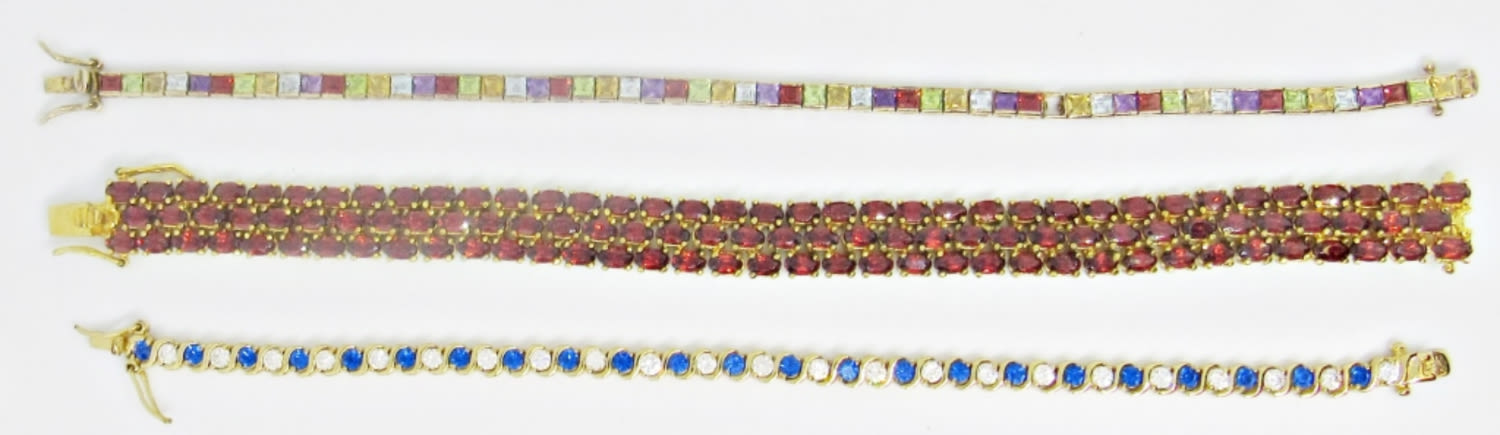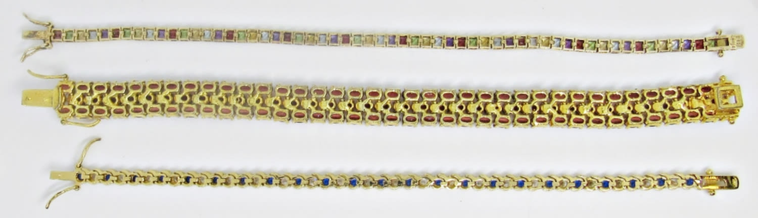 LARGE GARNET 7 1/2″ LONG, BLUE & CLEAR STONE 7″, RAINBOW missing (1) GEM 7″ LONG (38 DWT)
