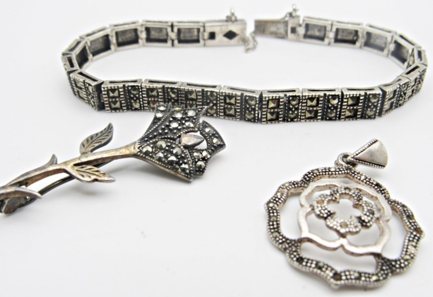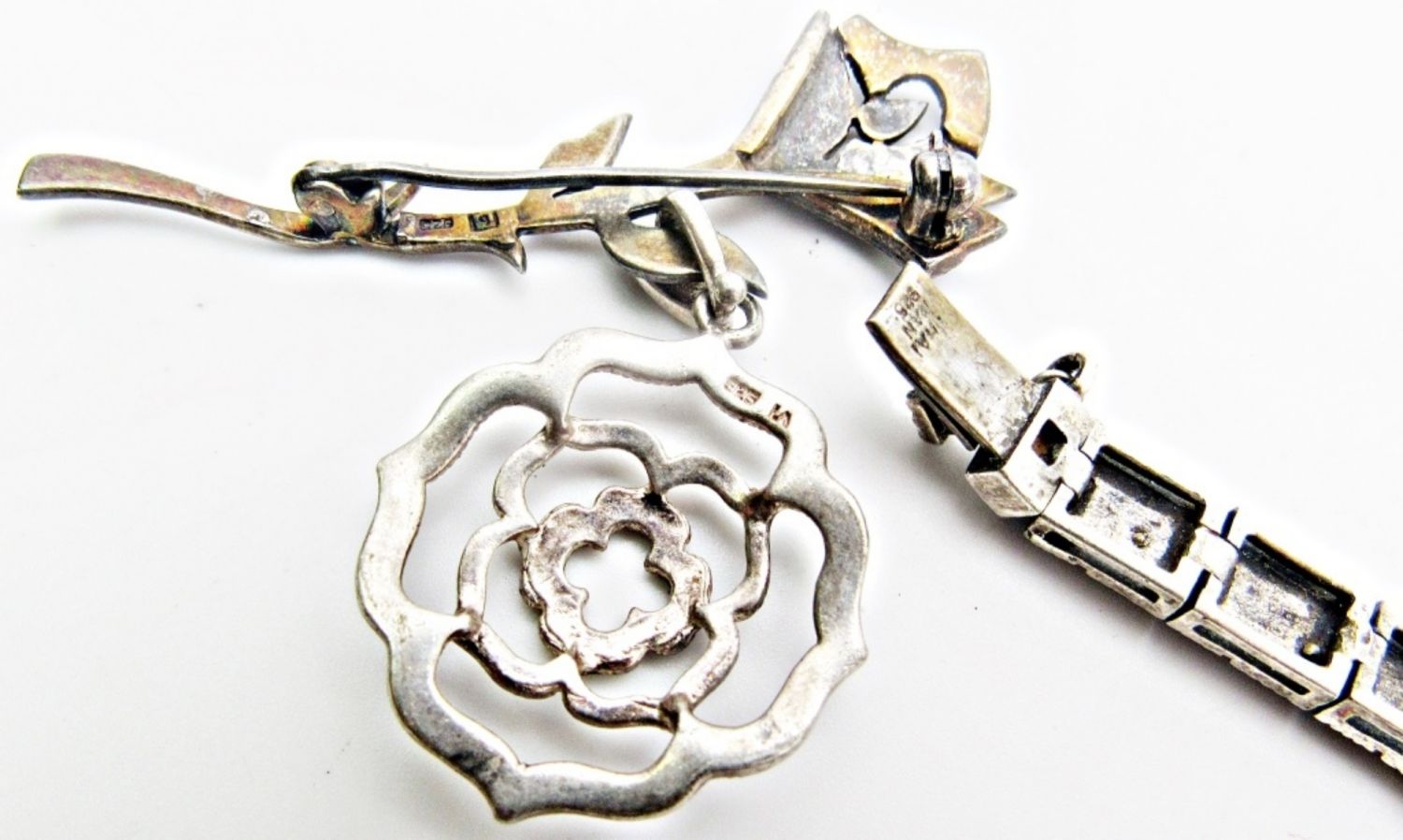 BRACELET, FLORAL PIN & PENDANT (16 DWT)