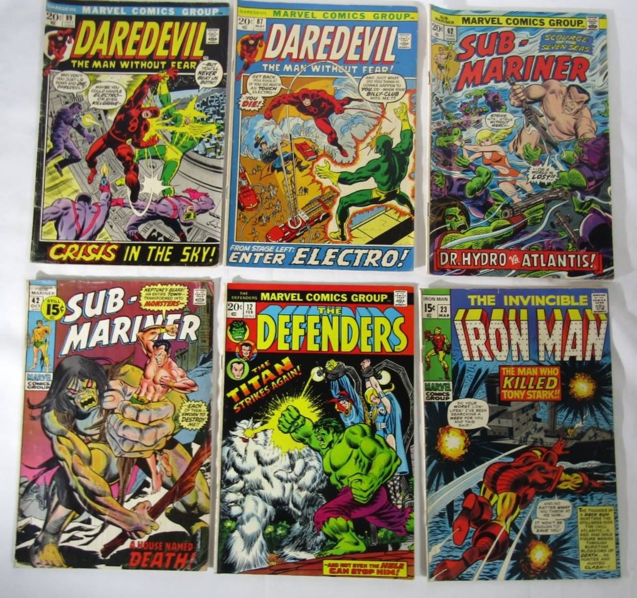 THE INVINCIBLE IRON MAN #23, THE DEFENDERS #12, SUB-MARINER #42 & #62, DAREDEVIL #87 & #89 – NICE LOT