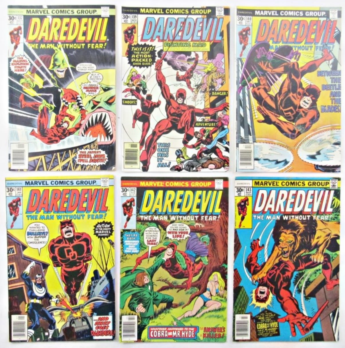 1976-1977 MARVEL ISSUE #137; COMIC RUN LOT ISSUES #139, #140, #141, #142, #143; VERY GOOD OVERALL CONDITION