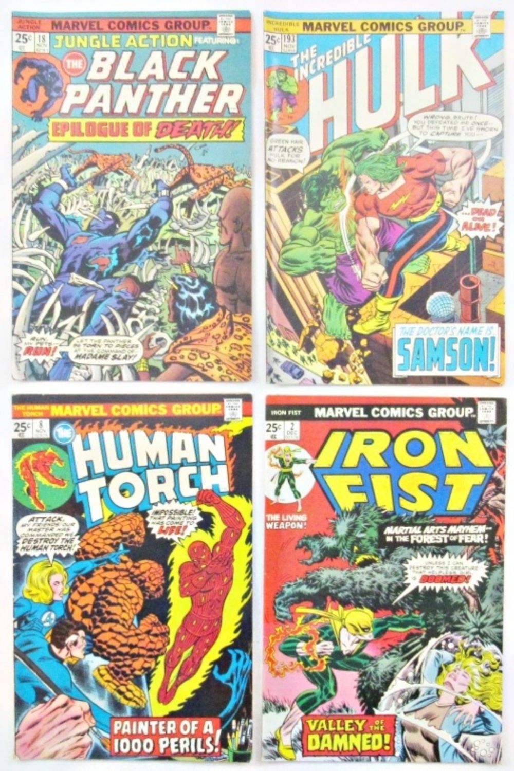 1975 #193 THE INCREDIBLE HULK, #18 BLACK PANTHER, #2 IRON FIST, #8 HUMAN TORCH – ALL VERY NICE CONDITION