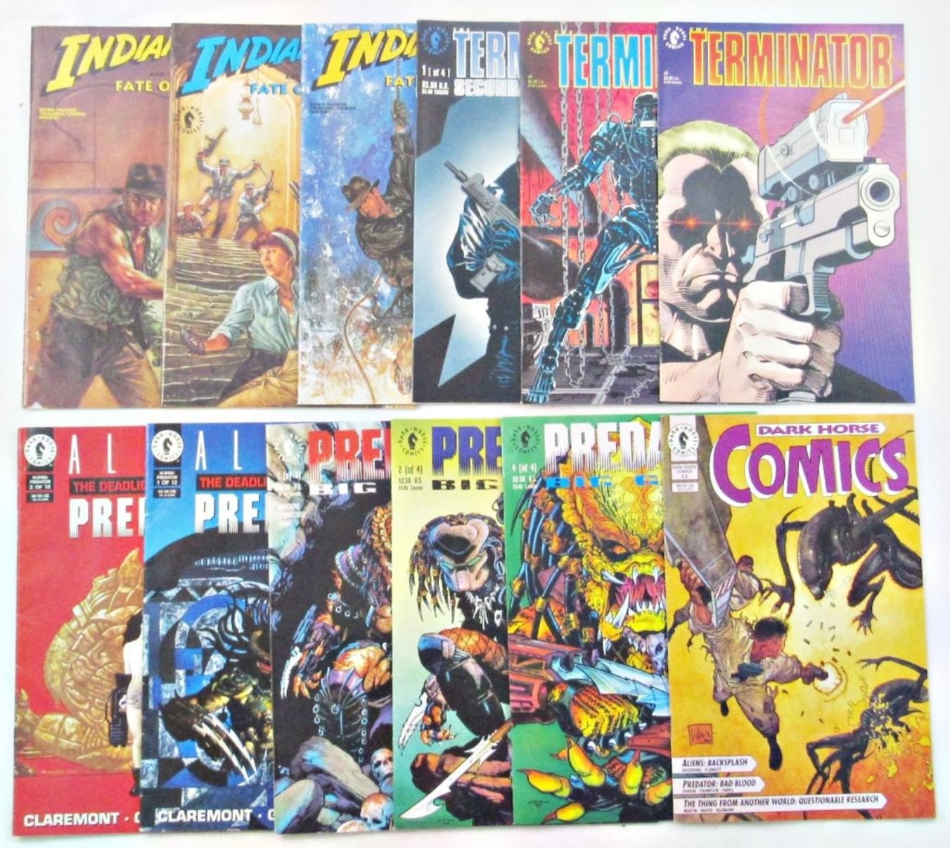 INDIANA JONES #1,2& 3; THE TERMINATOR #1, 3, & 4; PREDATOR #1, 2, & 4; ALEINS THE DEADLIEST OF THE SPECIES PREDATOR #1 & #2; DARK HORSE COMICS #13 – ALL NICE CONDITION