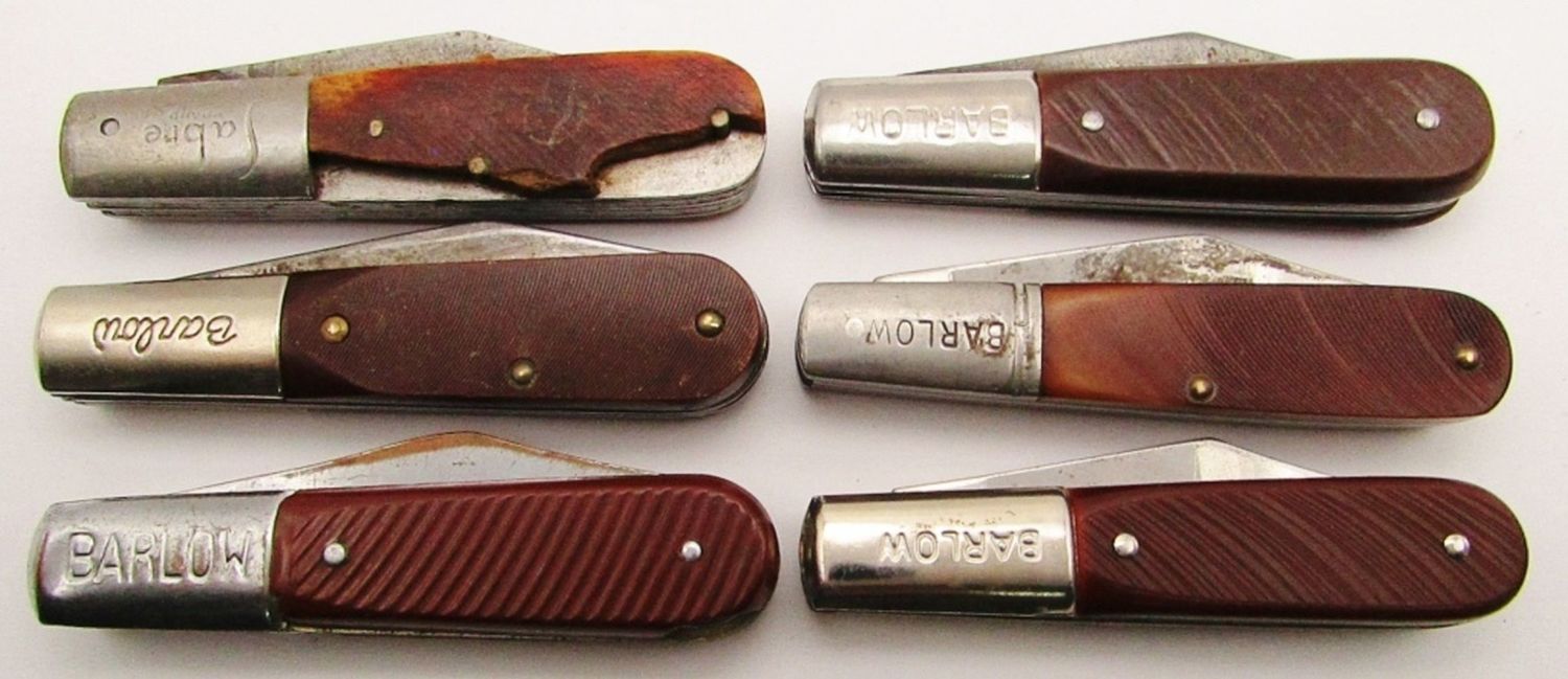 2-Blade Colonial Prov. USA, (2) 2-Blade Imperial (1 Ireland & 1 Prov. RI), 2-Blade Sabre Japan (Broken Handle), 2-Blade With Broken Front Handle; All Used Conditions!