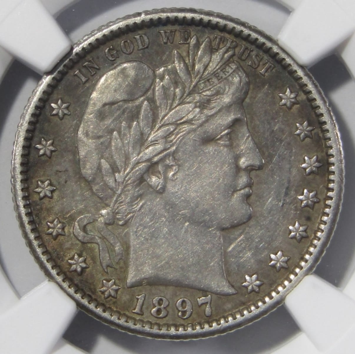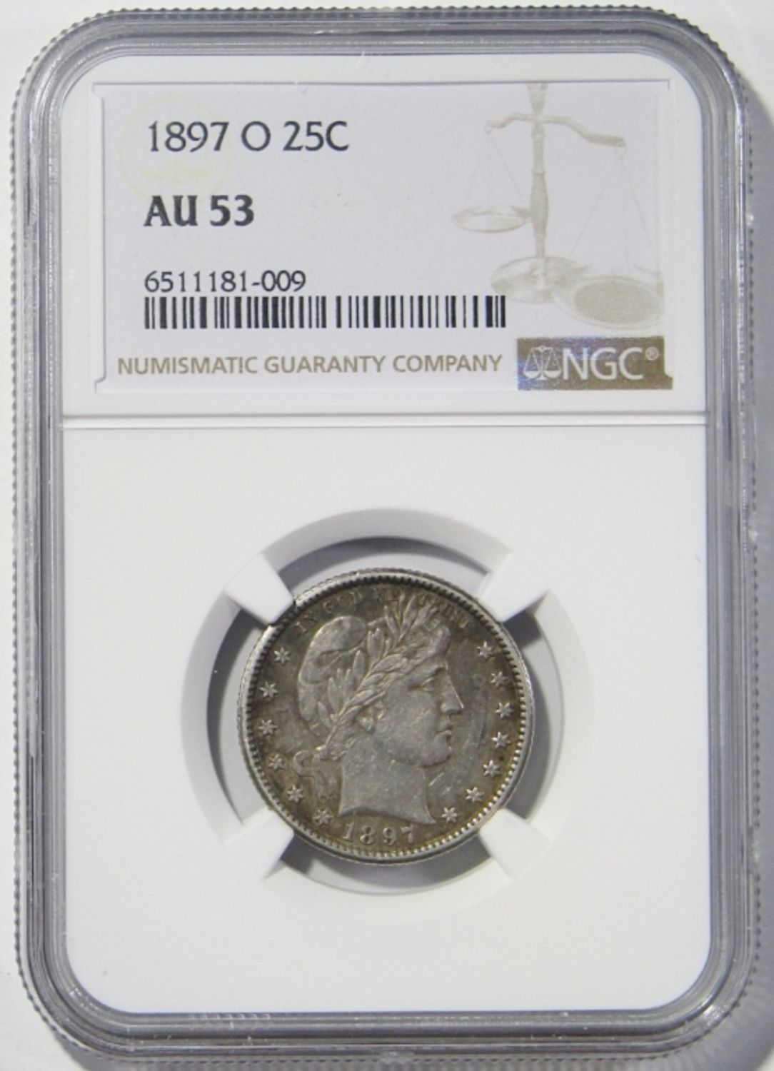 1897-O BARBER QUARTER NGC AU-53