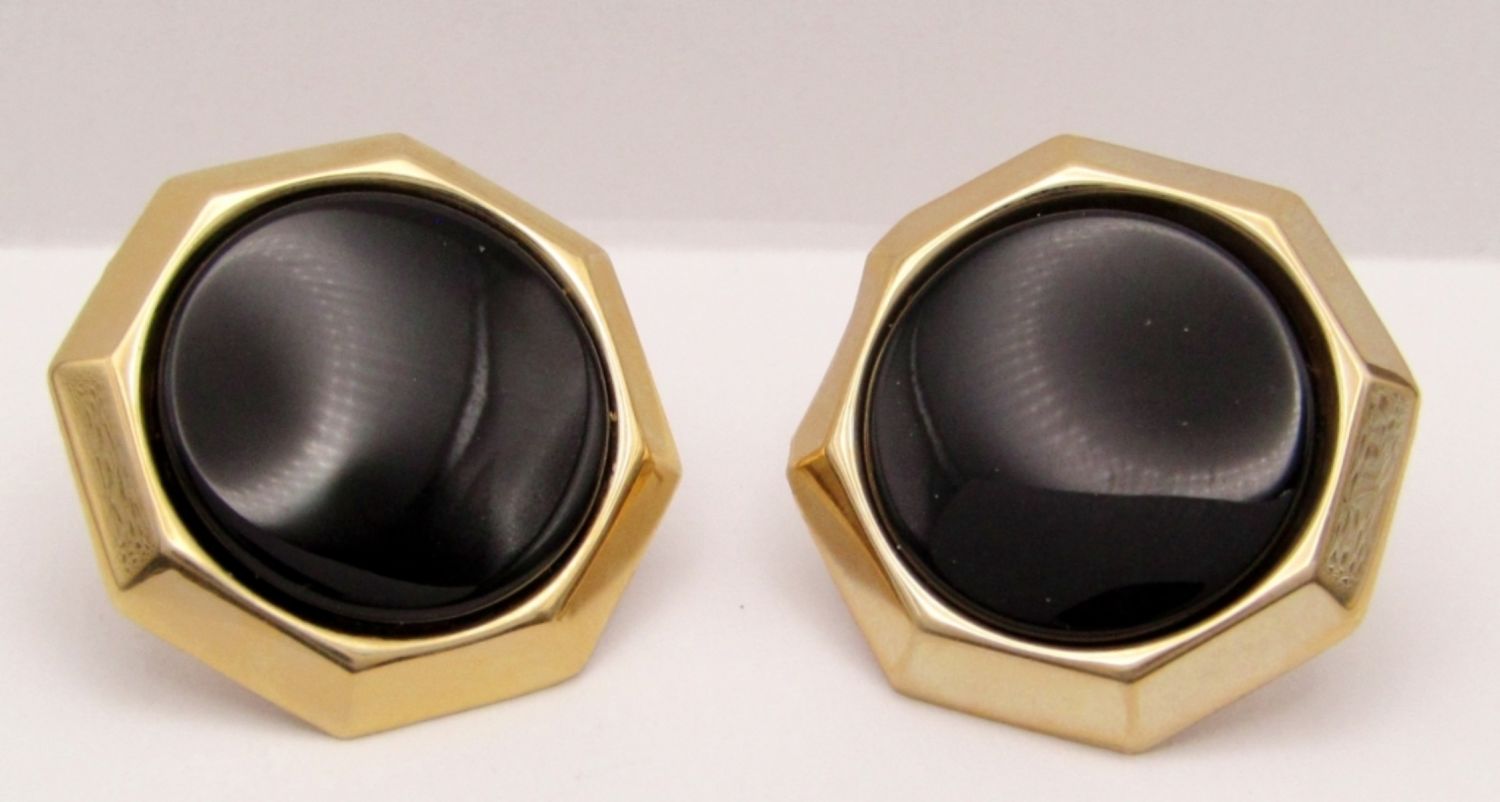 EARRINGS WITH BLACK ONYX CENTER-TOTAL 4 DWT