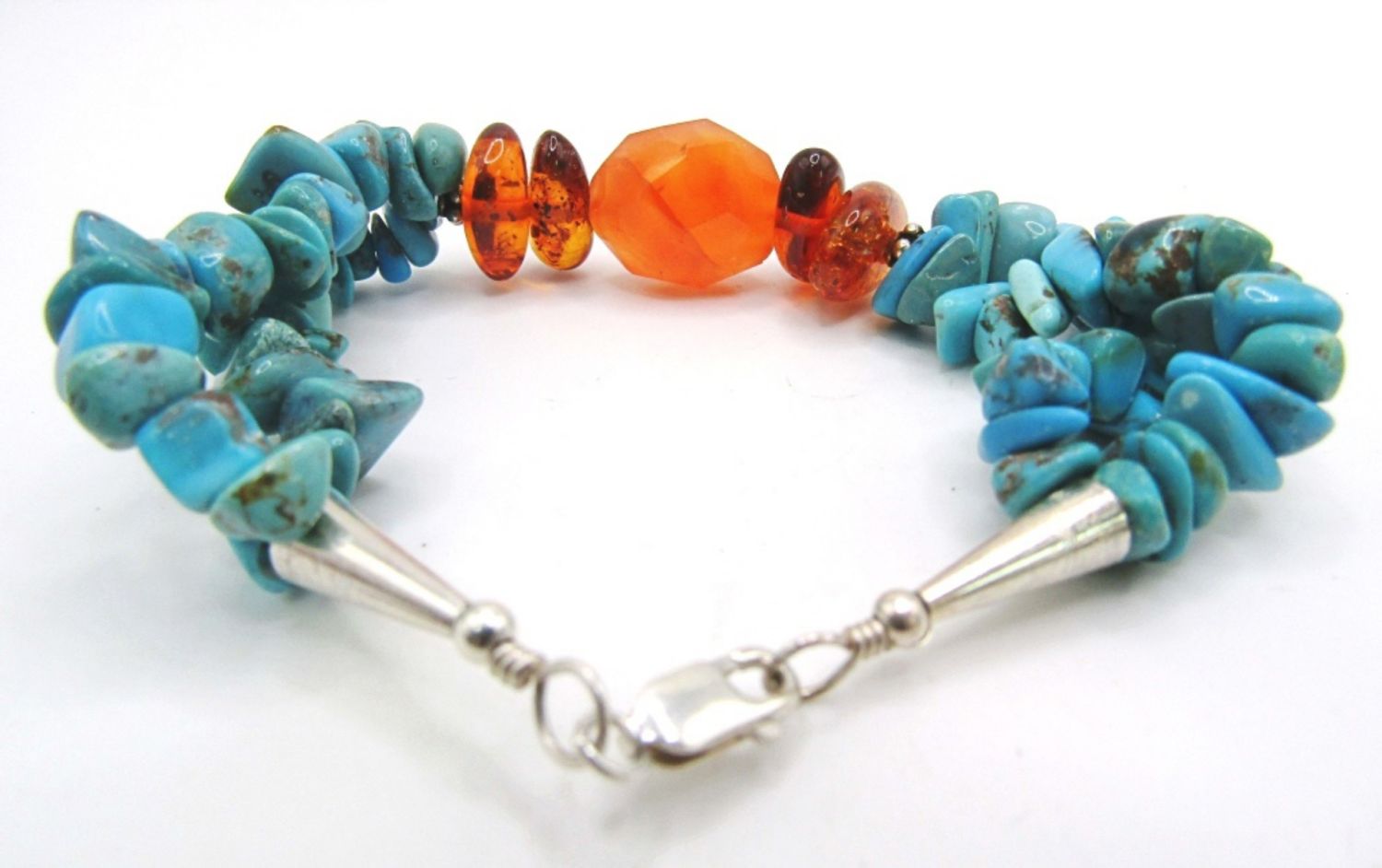 BEADED BRACELET WITH BALTIC AMBER STONE ACCENTS-MEASURES 7 INCHES